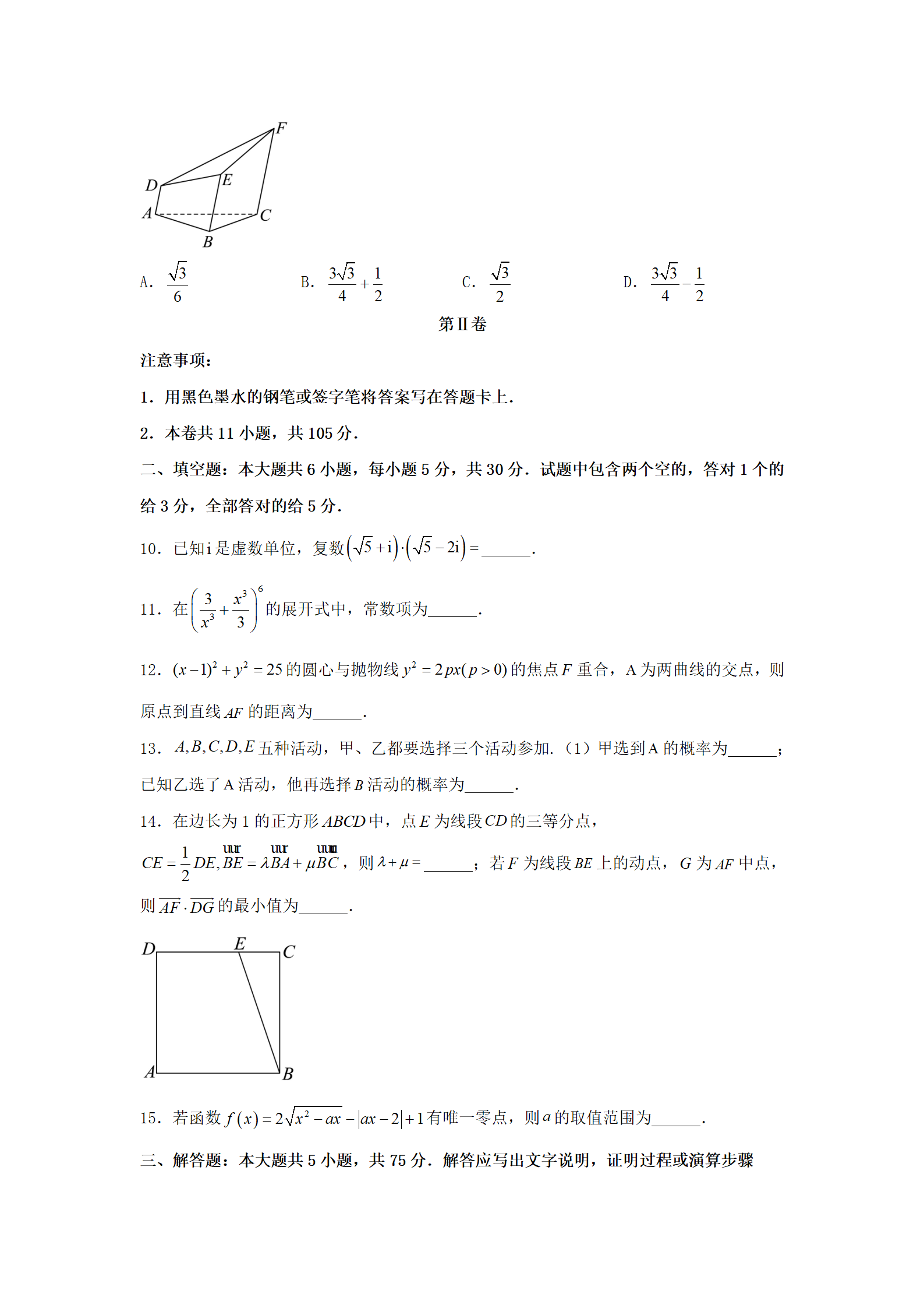 【文档名称】 2024年天津高考数学真题及答案(Word版).doc