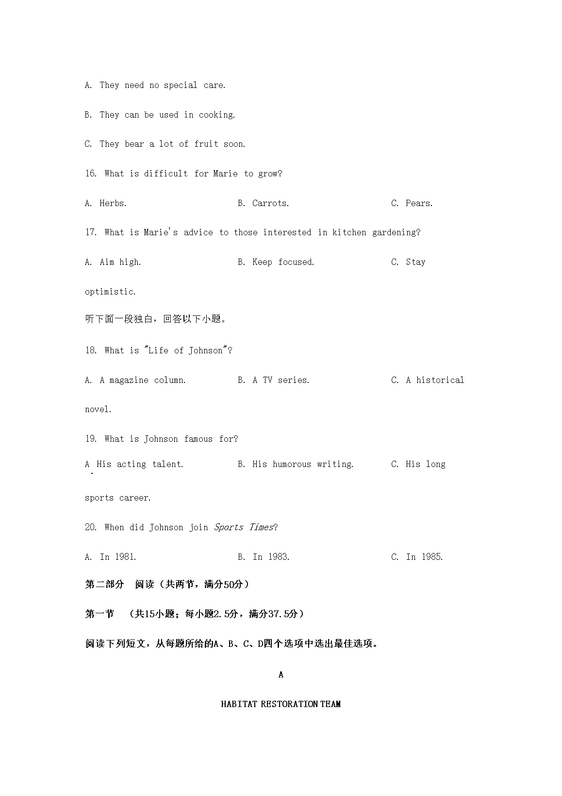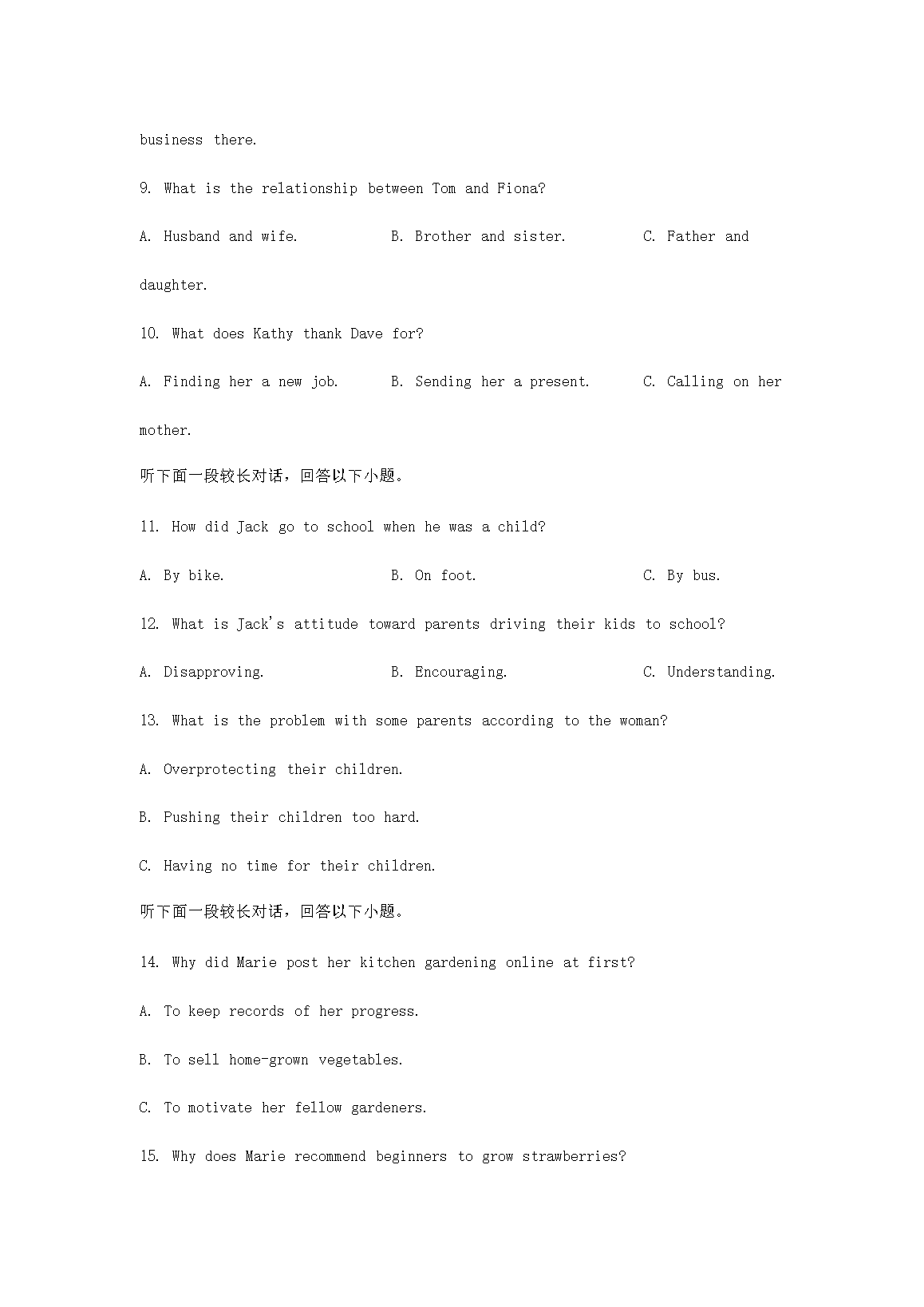 【文档预览】 无忧考网整理发布2024年江西高考英语真题及答案(Word版),前五页预览如下: