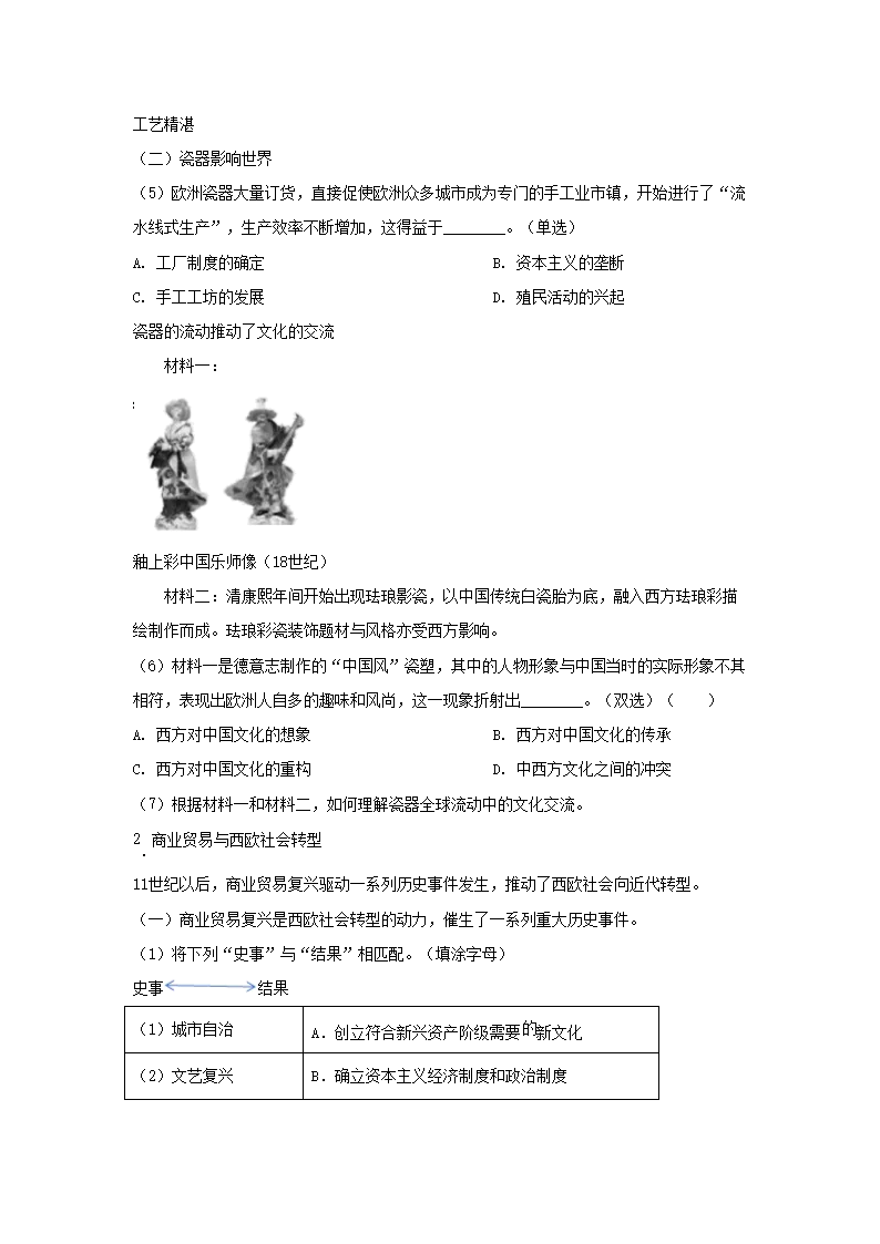 【文档名称】 2024年上海学考等级性考试历史真题及答案(Word版).doc
