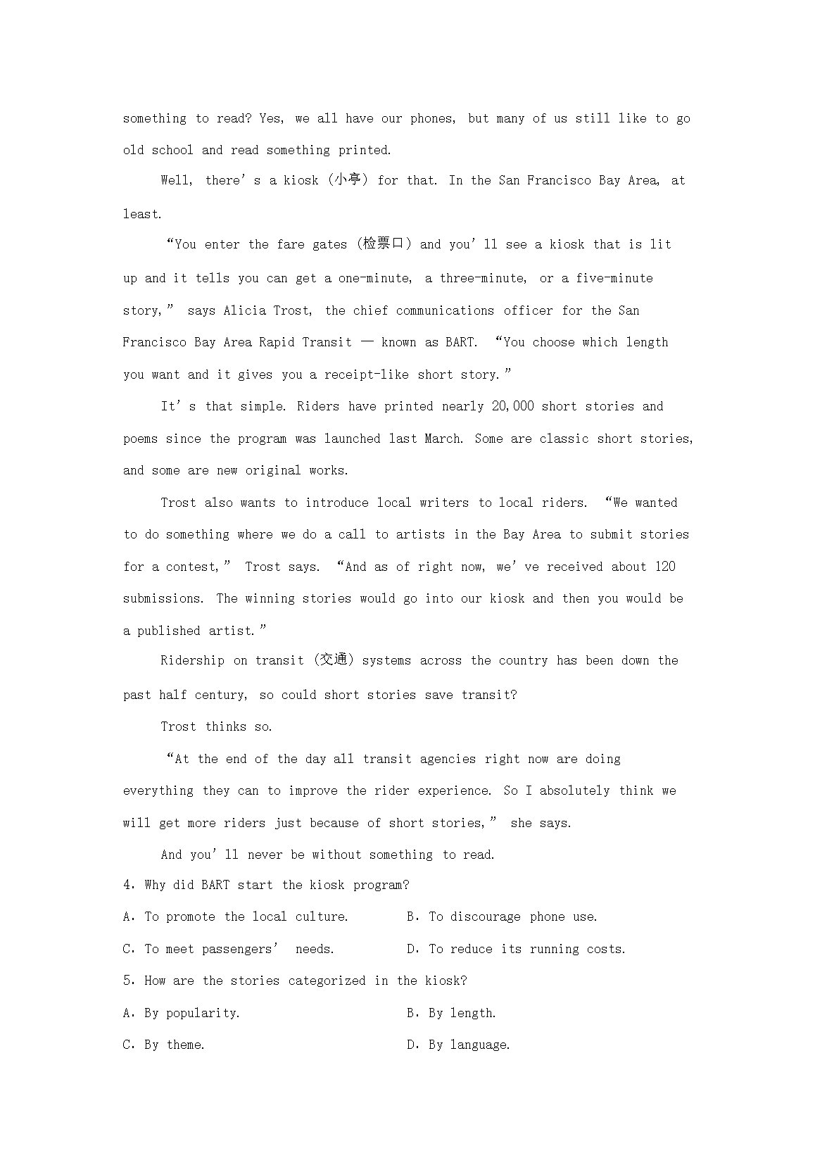 【文档名称】 2024年甘肃高考英语真题及答案(Word版).doc