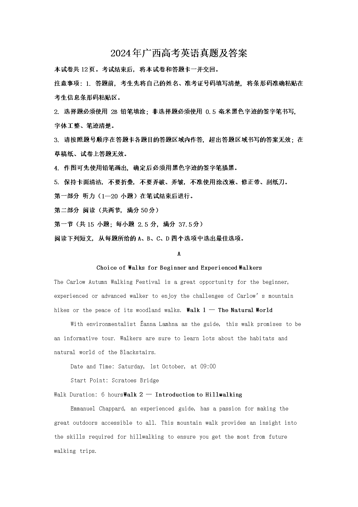 【文档预览】 无忧考网整理发布2024年广西高考英语真题及答案(Word版),前五页预览如下: