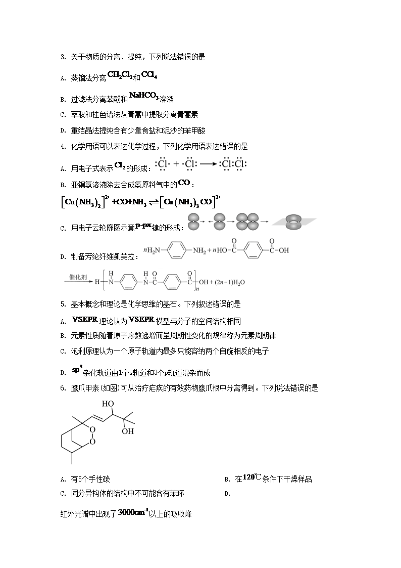 【文档名称】 2024年湖北学考选择性考试化学真题及答案(Word版).doc