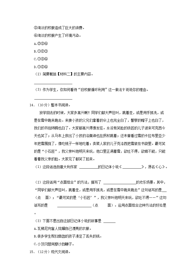 - 2022-2023年山东省潍坊市高新区六年级上册期末语文试卷及答案(部编版)