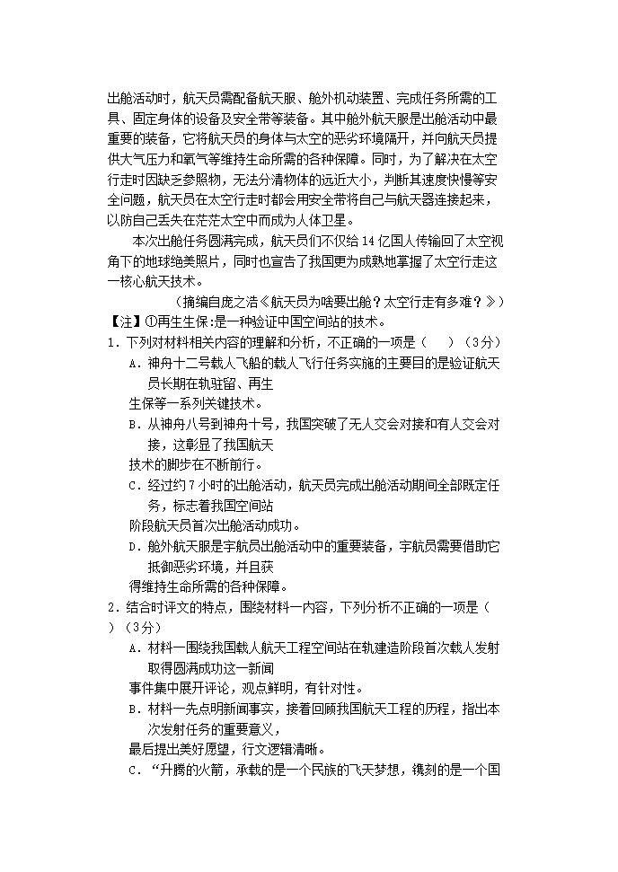 【文档名称】 2021-2022年黑龙江省齐齐哈尔市高一语文上学期期末试卷及答案(Word版).doc