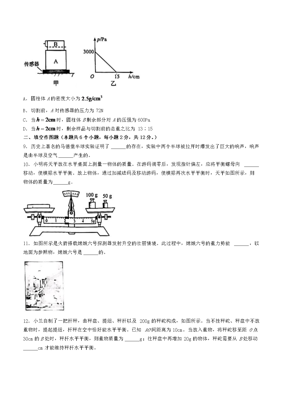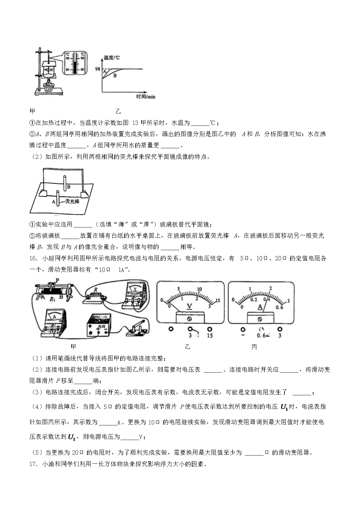 【文档名称】 2024年重庆渝北中考物理试题及答案(B卷)(Word版).doc