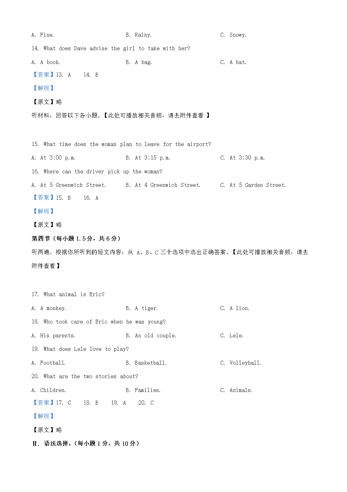 【文档名称】 2024年重庆渝北中考英语试题及答案(B卷)(Word版).doc