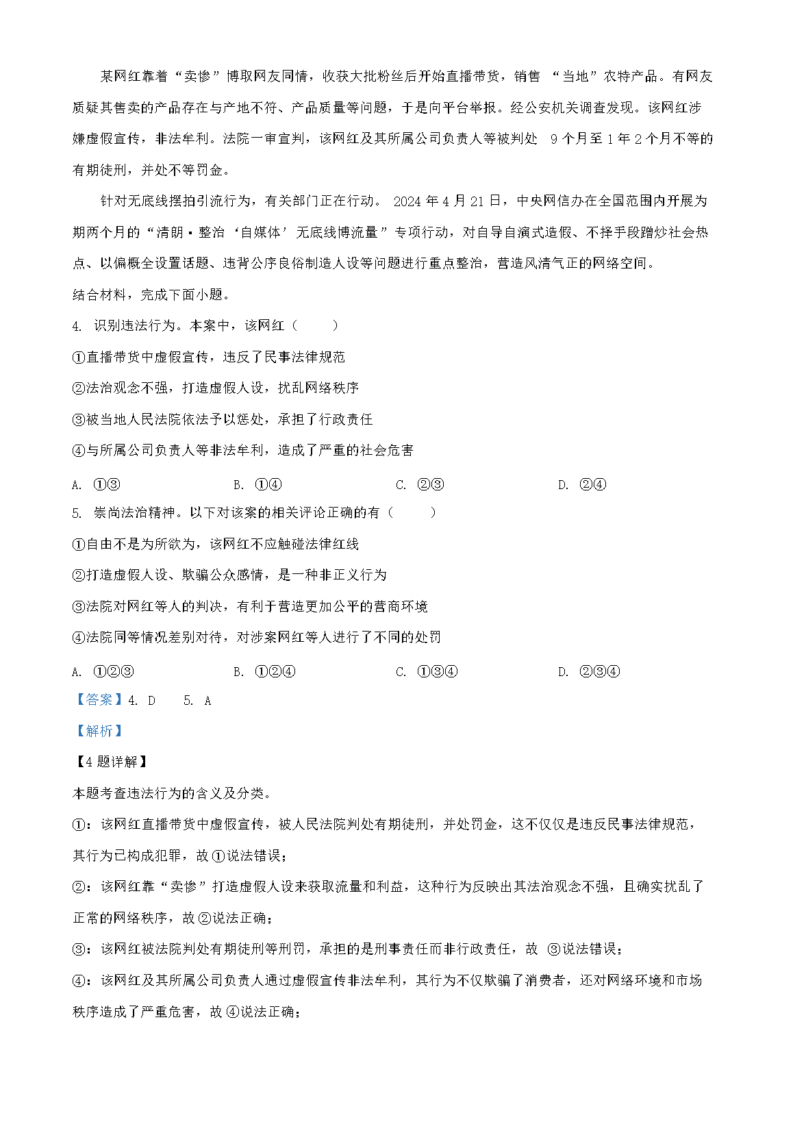 【文档名称】 2024年重庆双桥中考道德与法治试题及答案(B卷)(Word版).doc