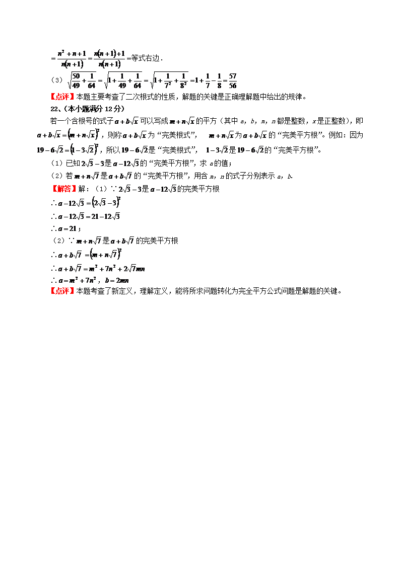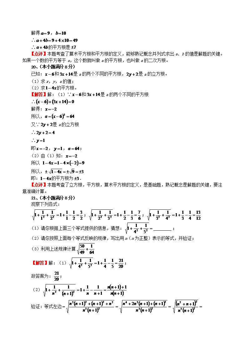 【文档名称】 华东师大版八年级数学上册第11章数的开方训练试卷及答案(Word版).doc