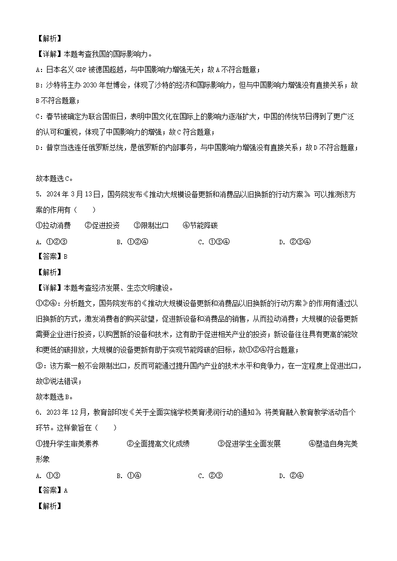 【文档名称】 2024年江苏苏州中考道德与法治试题及答案(Word版).doc