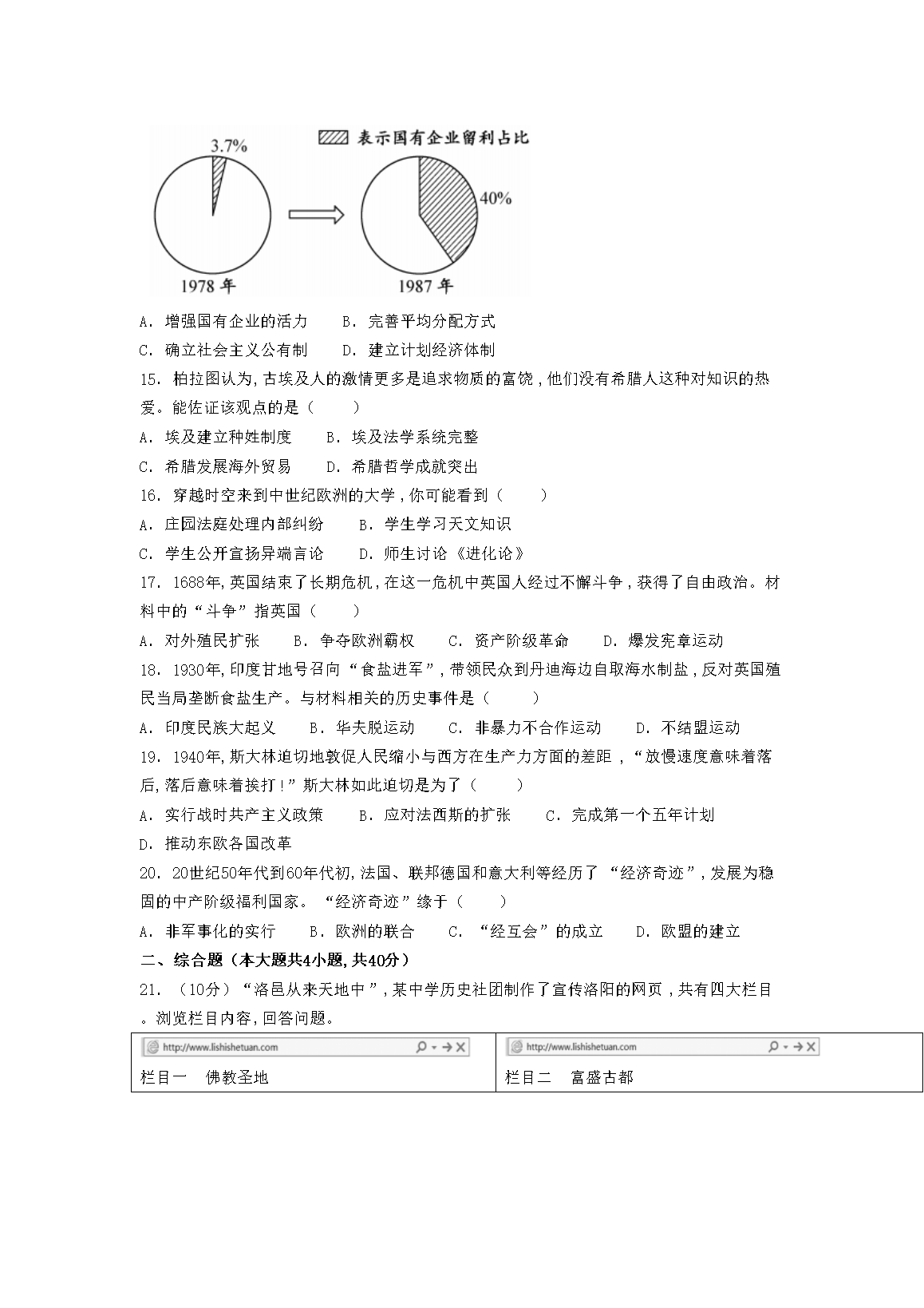 【文档预览】 无忧考网整理发布2024年江西抚州中考历史真题及答案(Word版),前五页预览如下: