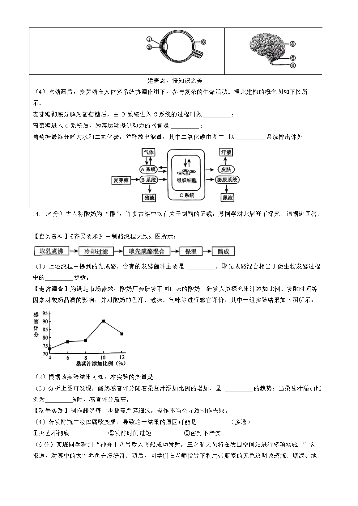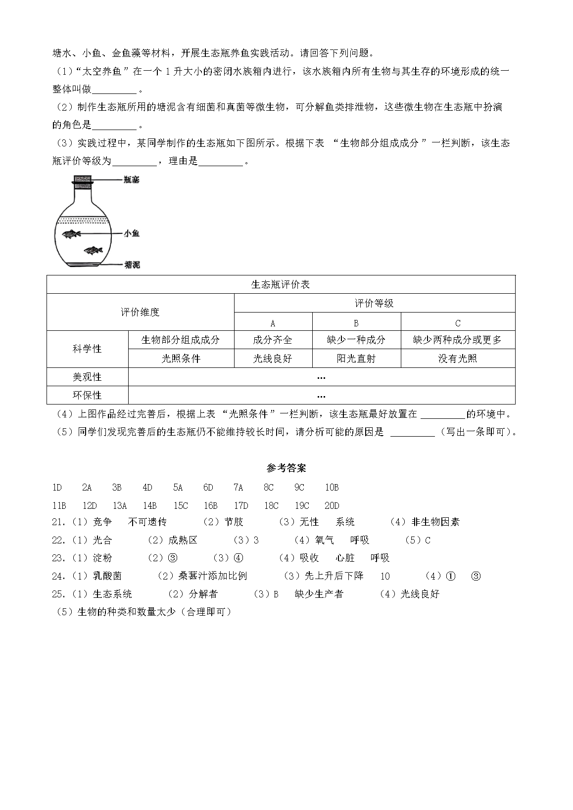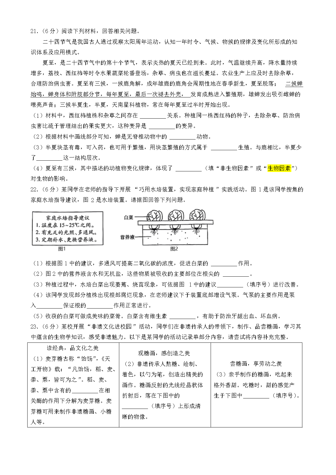 【文档名称】 2024年江西吉安中考生物试题及答案(Word版).doc