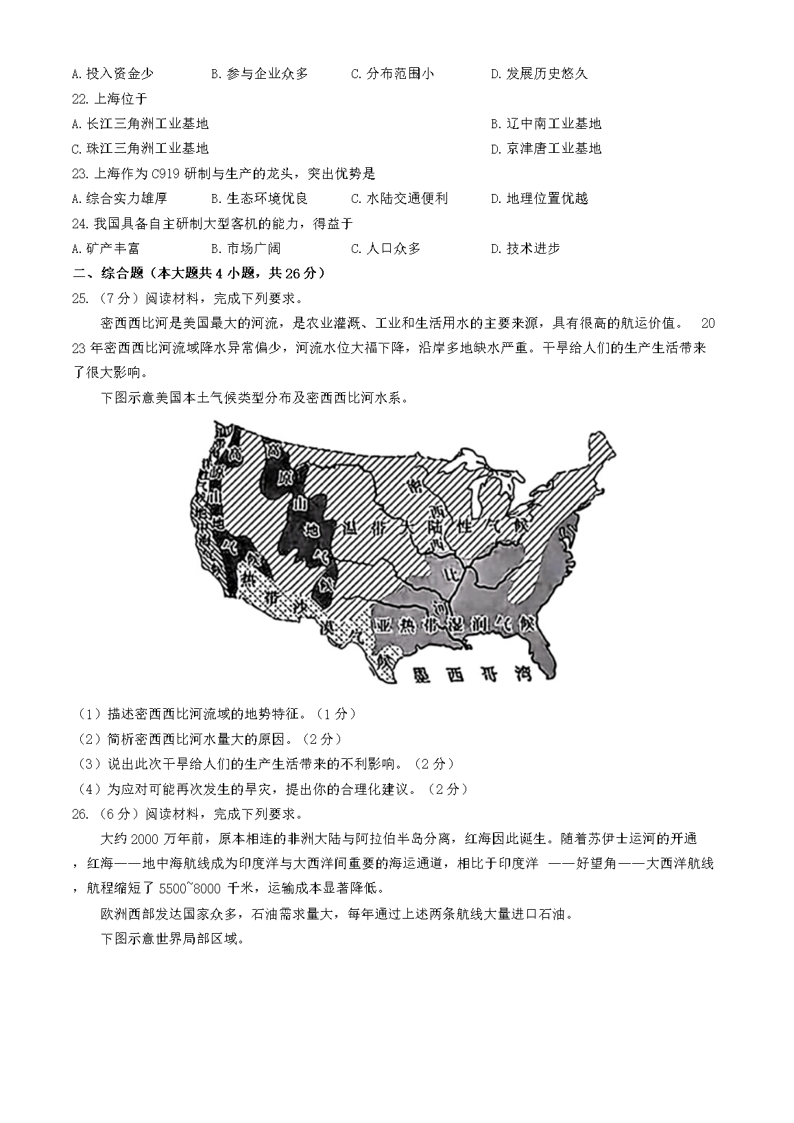 【文档名称】 2024年江西鹰潭中考地理试题及答案(Word版).doc