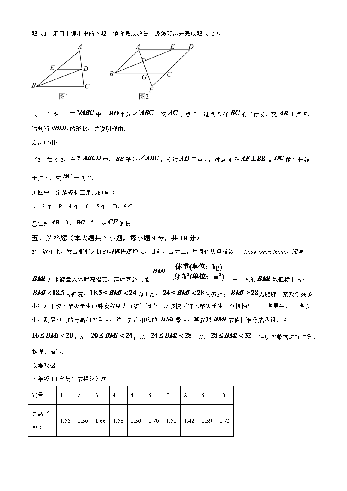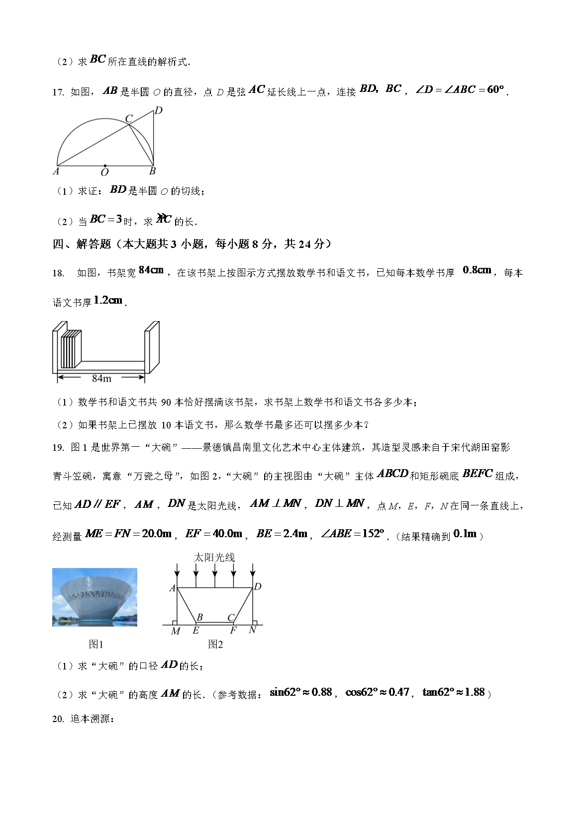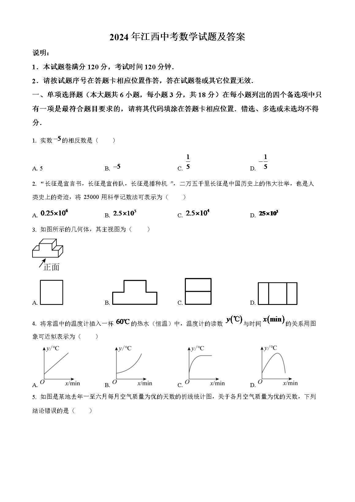 【文档名称】 2024年江西鹰潭中考数学试题及答案(Word版).doc