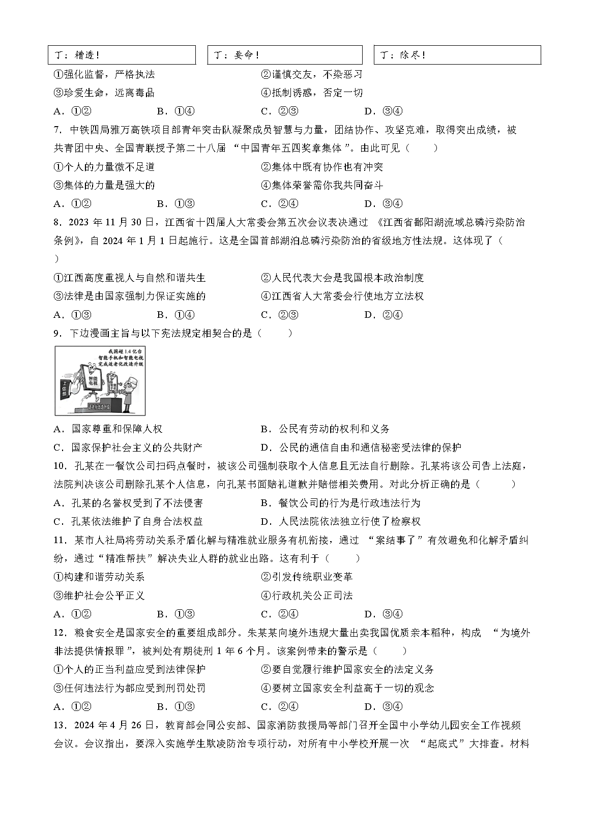 【文档名称】 2024年江西中考道德与法治试题及答案(Word版).doc