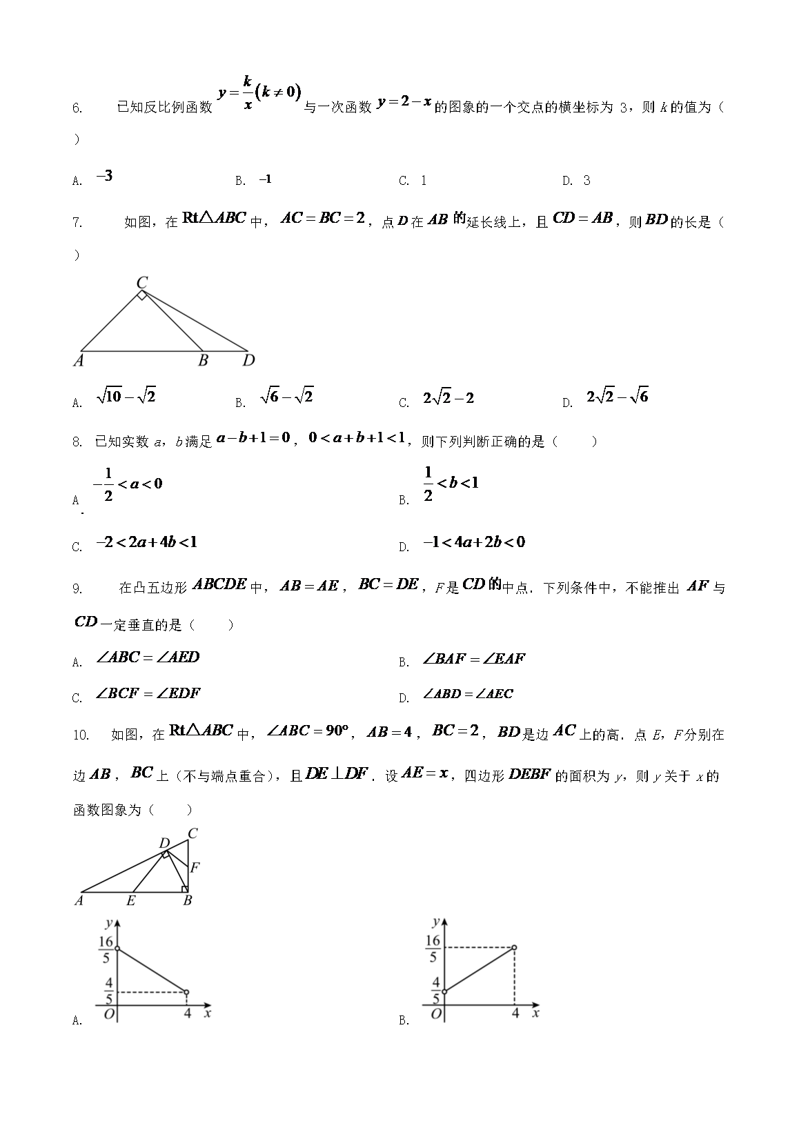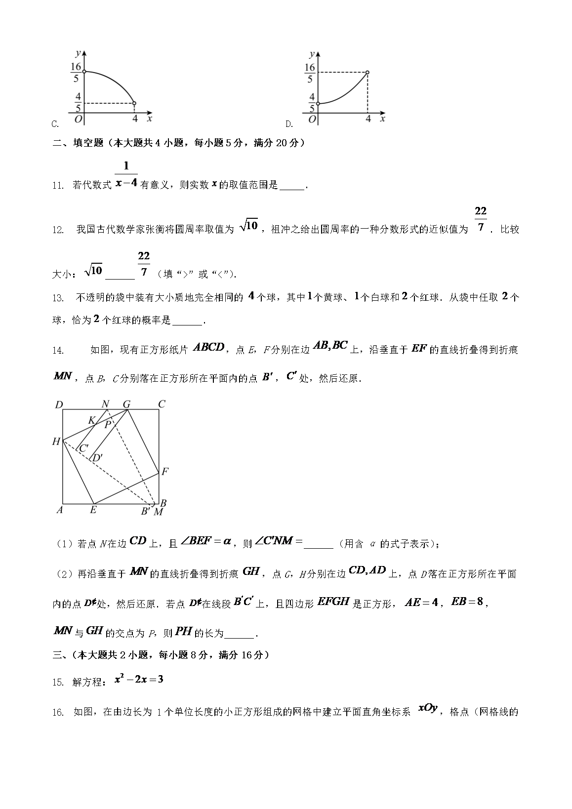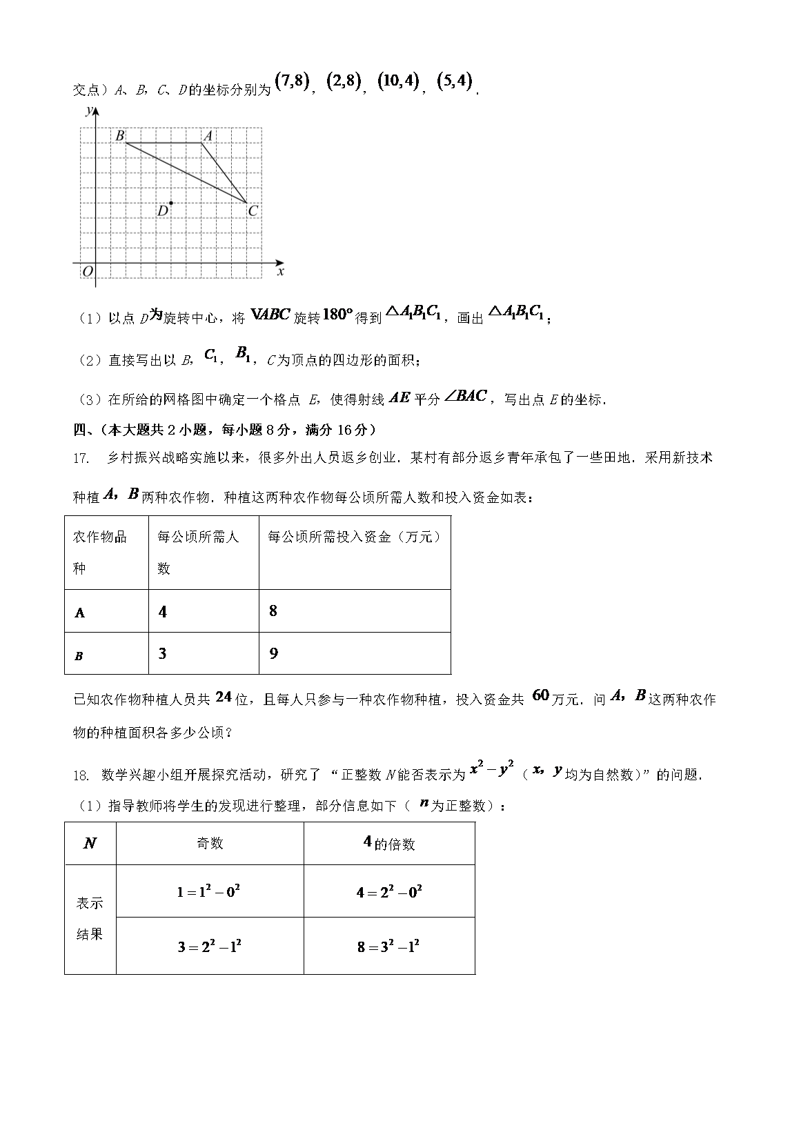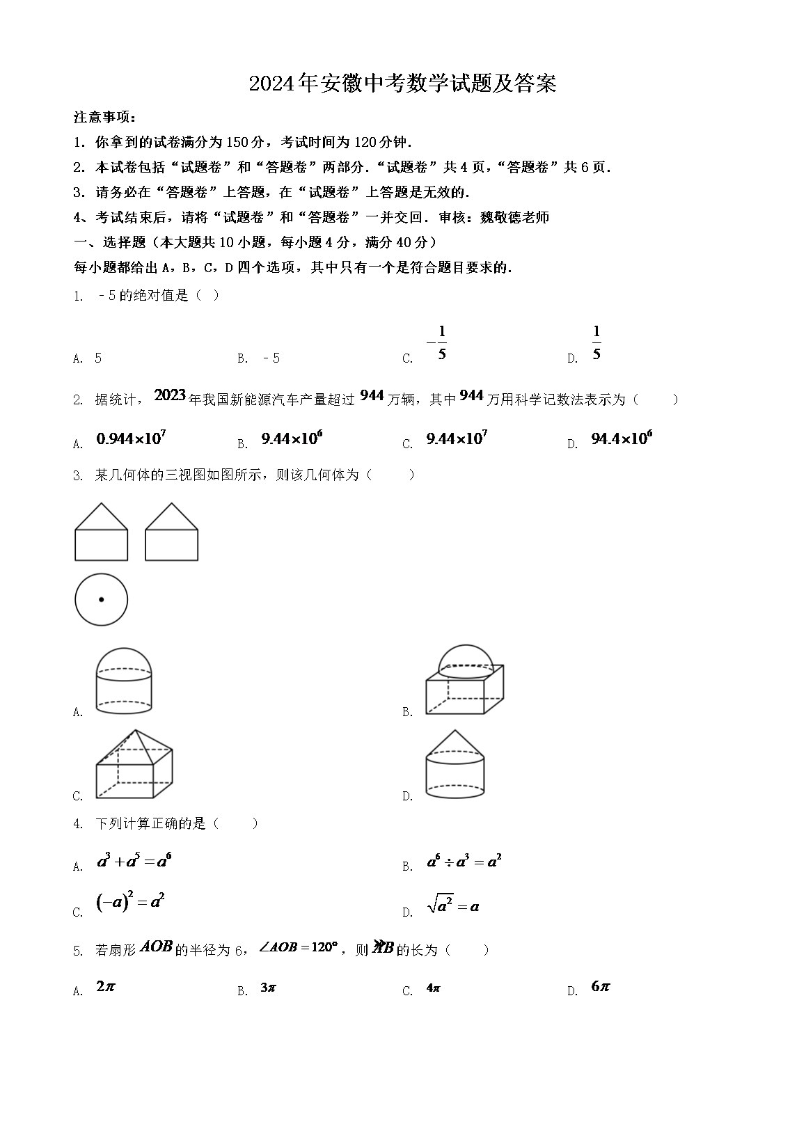 【文档名称】 2024年安徽中考数学试题及答案(Word版).doc