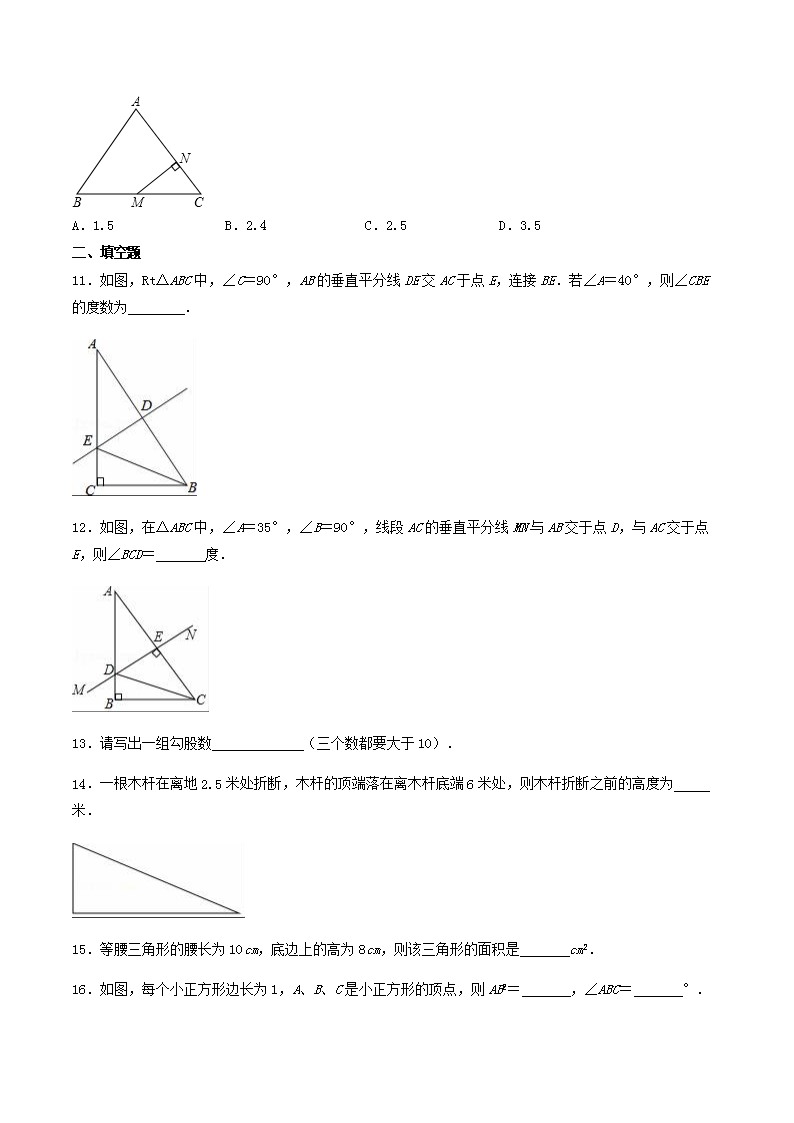 【文档预览】 无忧考网整理发布2022年苏科版八年级数学上册第3章勾股定理单元试题及答案(Word版),前五页预览如下: