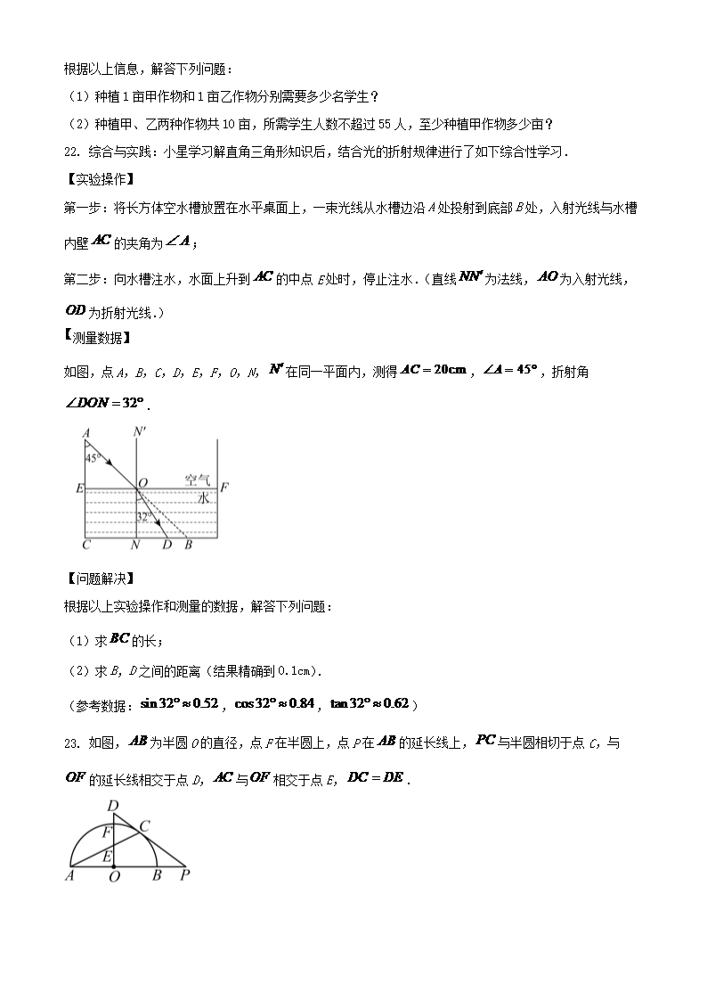 【文档名称】 2024年贵州六盘水中考数学试题及答案(Word版).doc
