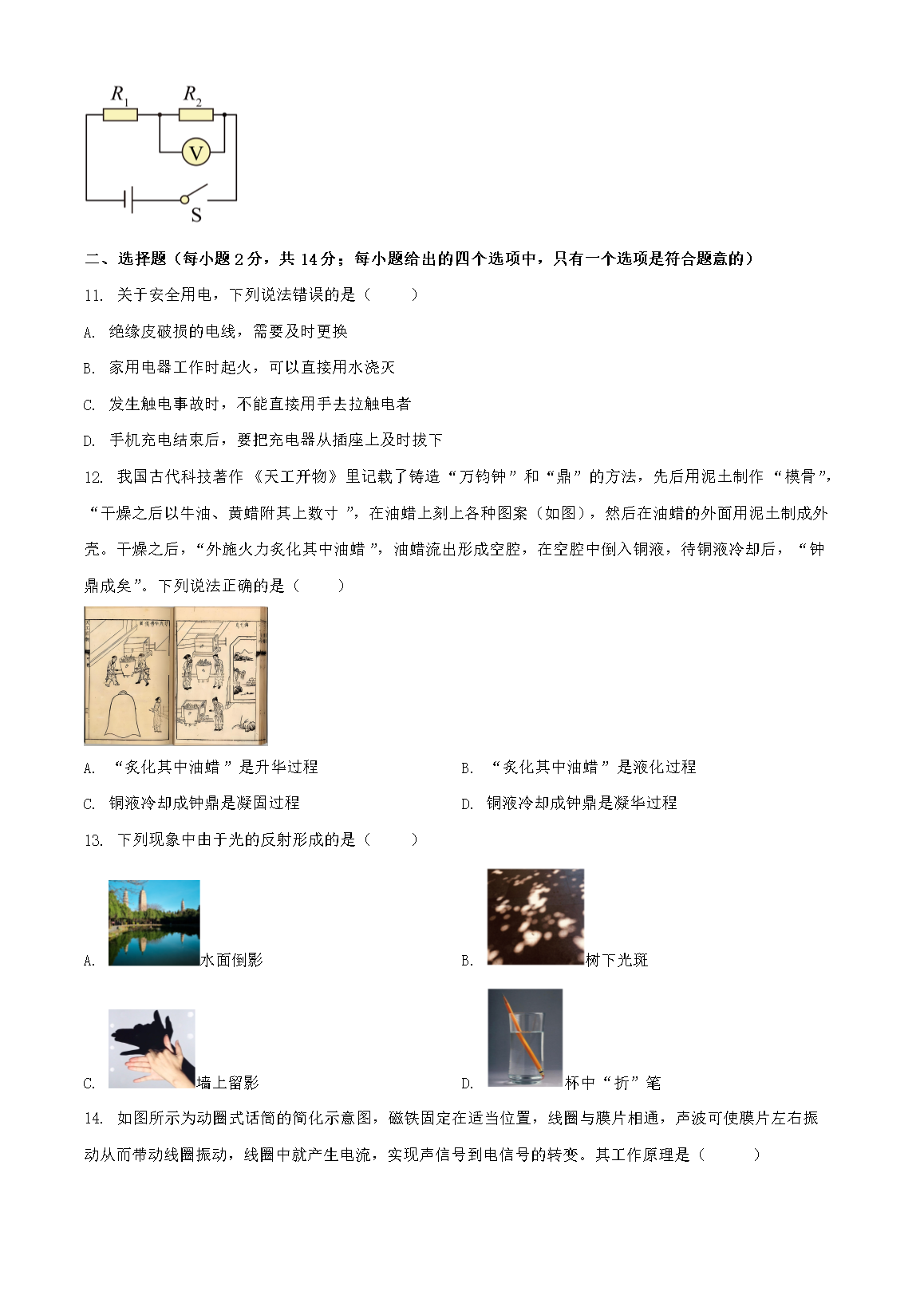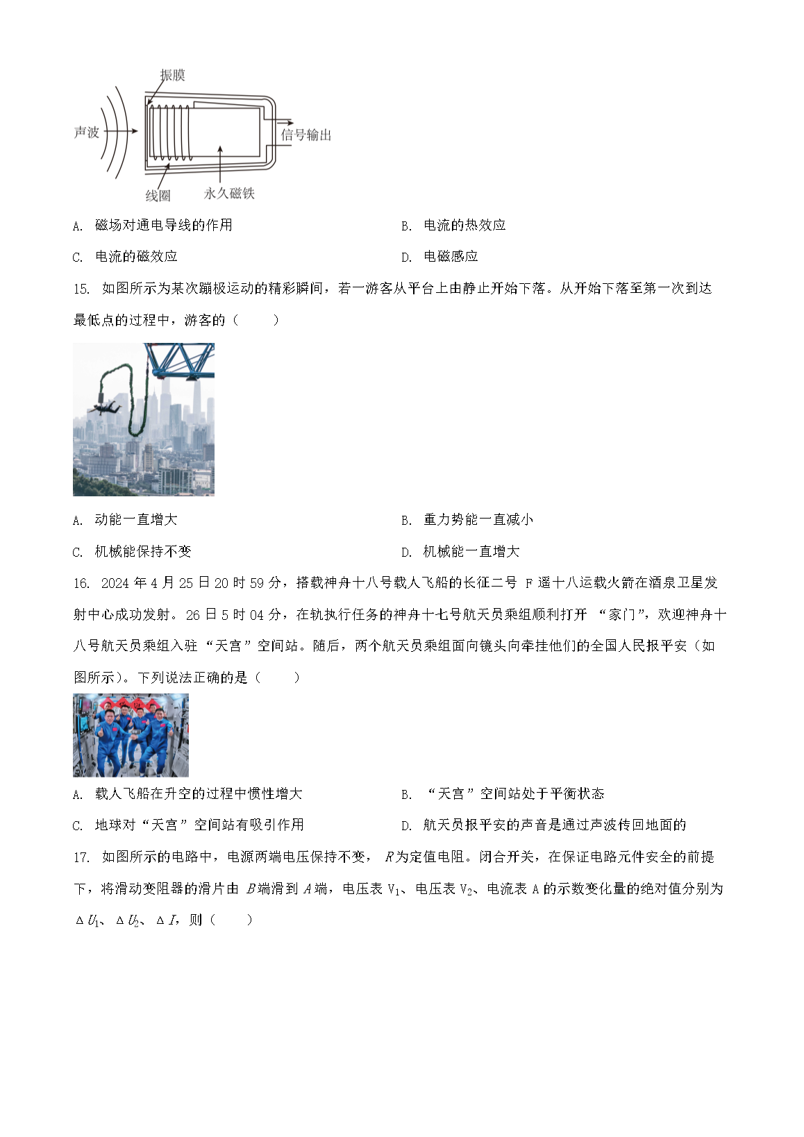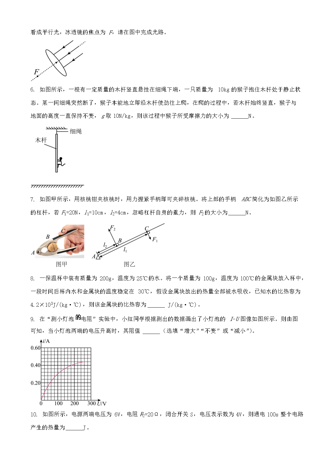 【文档名称】 2024年安徽淮北中考物理试题及答案(Word版).doc