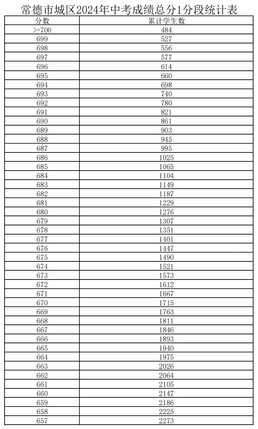 2025年湖南常德市中心城区中考成绩总分1分段统计表公布