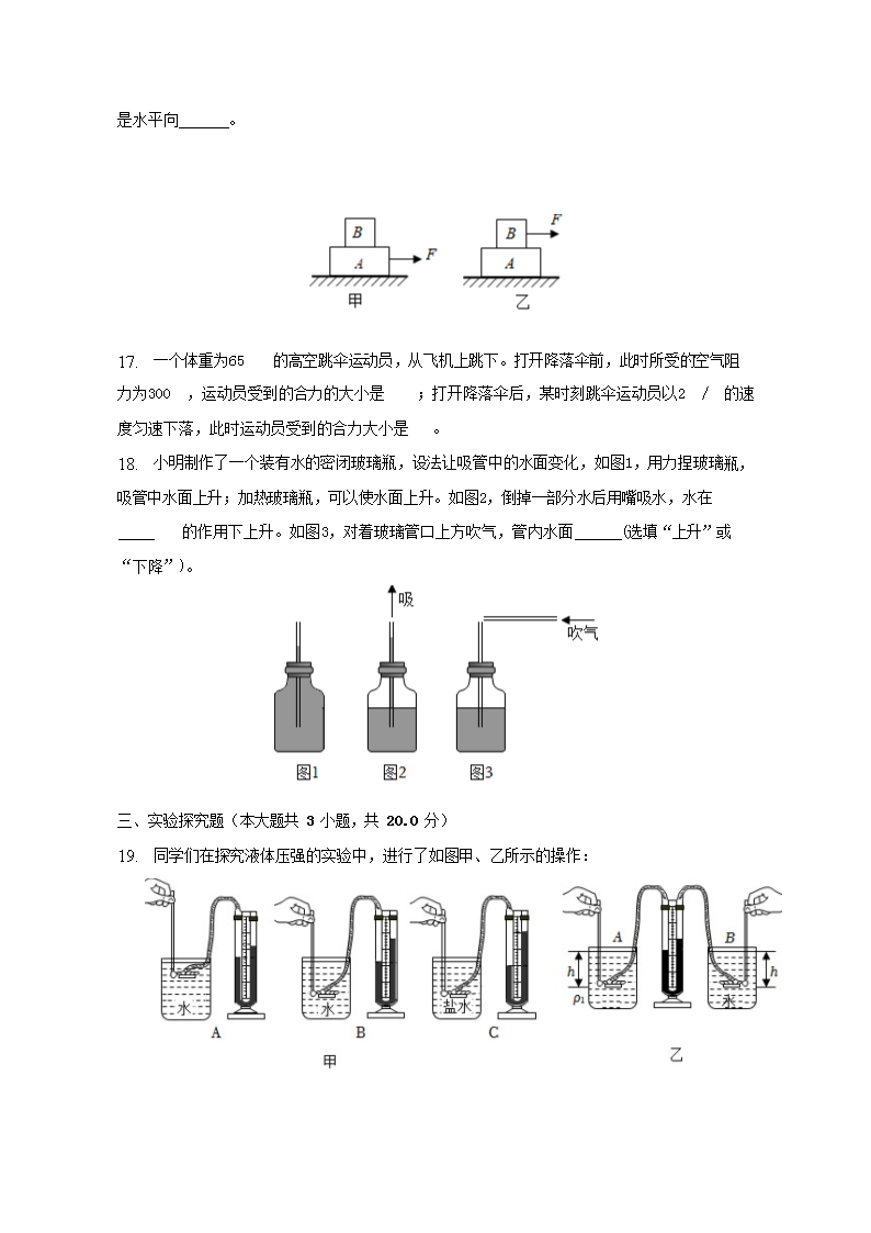 【文档名称】 2022-2023学年四川省绵阳市涪城区八年级下学期期中物理试题及答案(Word版).doc