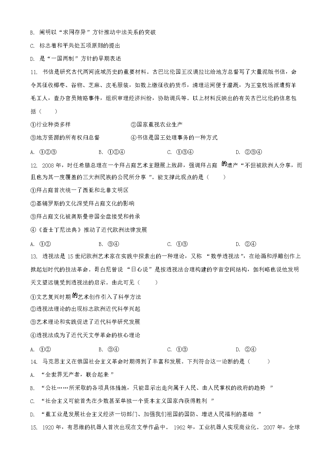 【文档名称】 2024年北京学考等级性考试历史试题及答案(Word版).doc