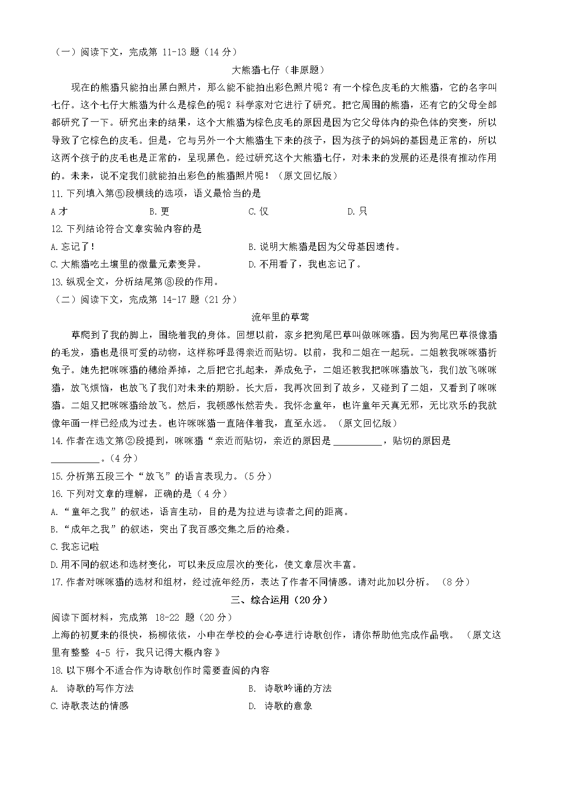 【文档预览】 无忧考网整理发布2024年上海松江中考语文试题及答案(Word版),前五页预览如下: