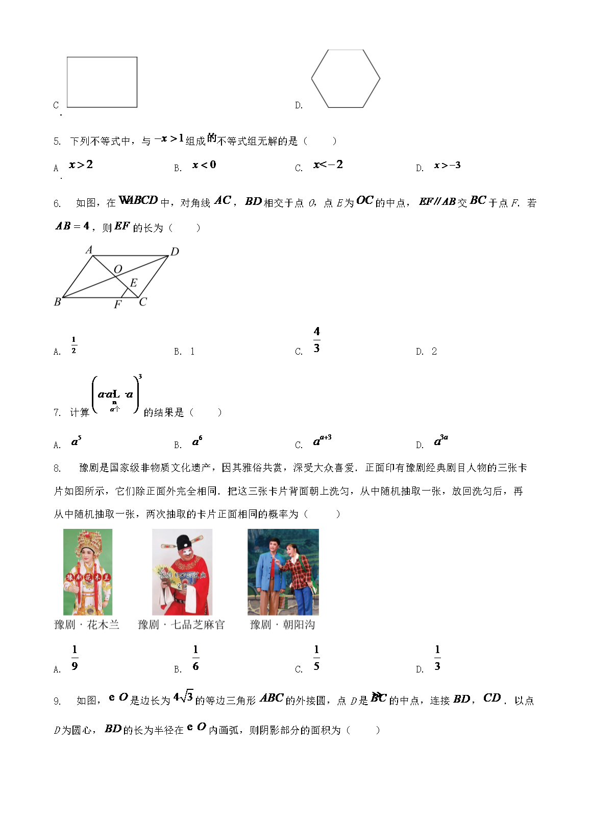 【文档名称】 2024年河南周口中考数学试题及答案(Word版).doc