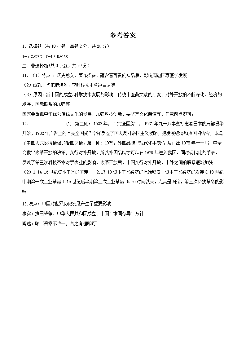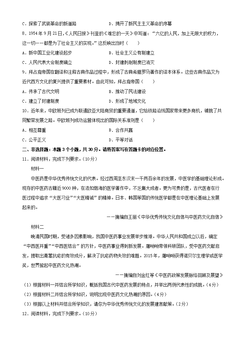 【文档名称】 2024年内蒙古巴彦淖尔中考历史试题及答案(Word版).doc
