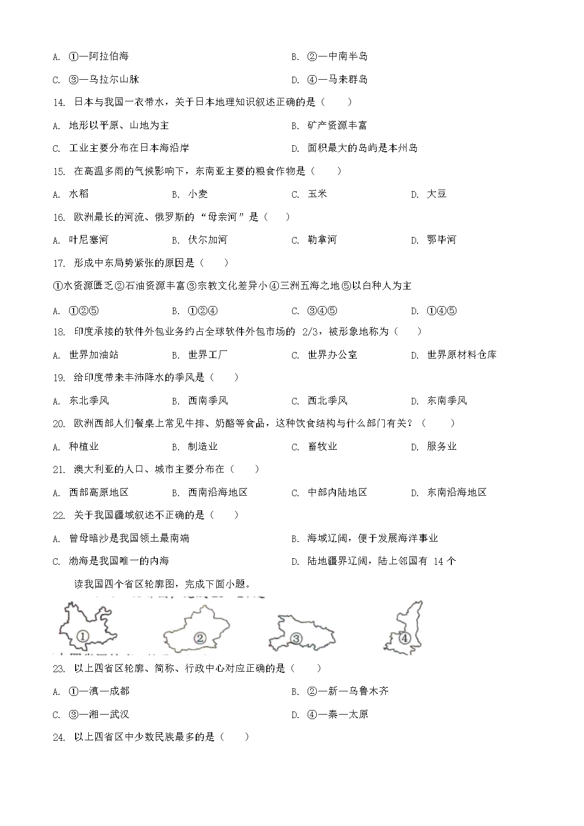 【文档名称】 2024年黑龙江鹤岗中考地理试题及答案(Word版).doc