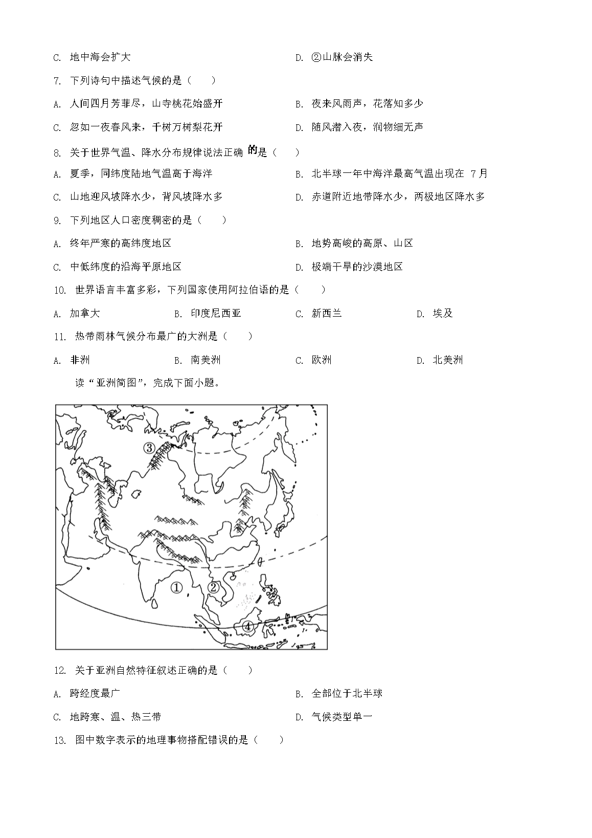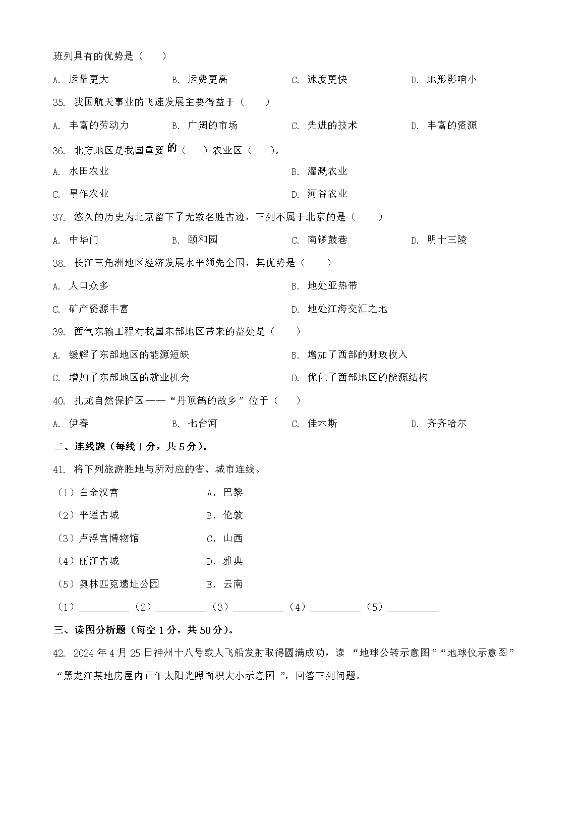 【文档名称】 2024年黑龙江七台河中考地理试题及答案(Word版).doc