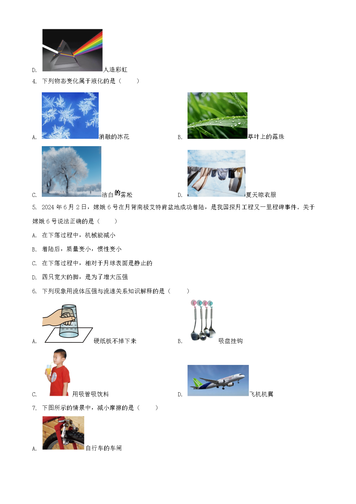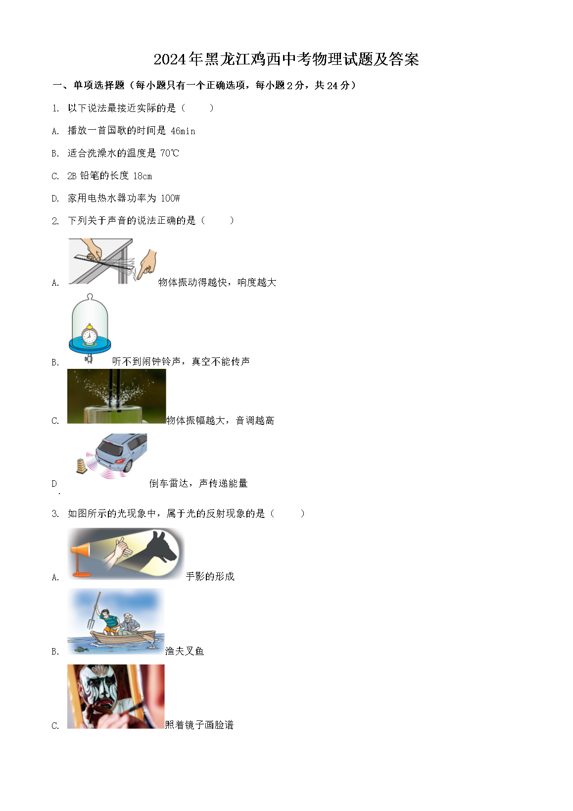 【文档名称】 2024年黑龙江鸡西中考物理试题及答案(Word版).doc