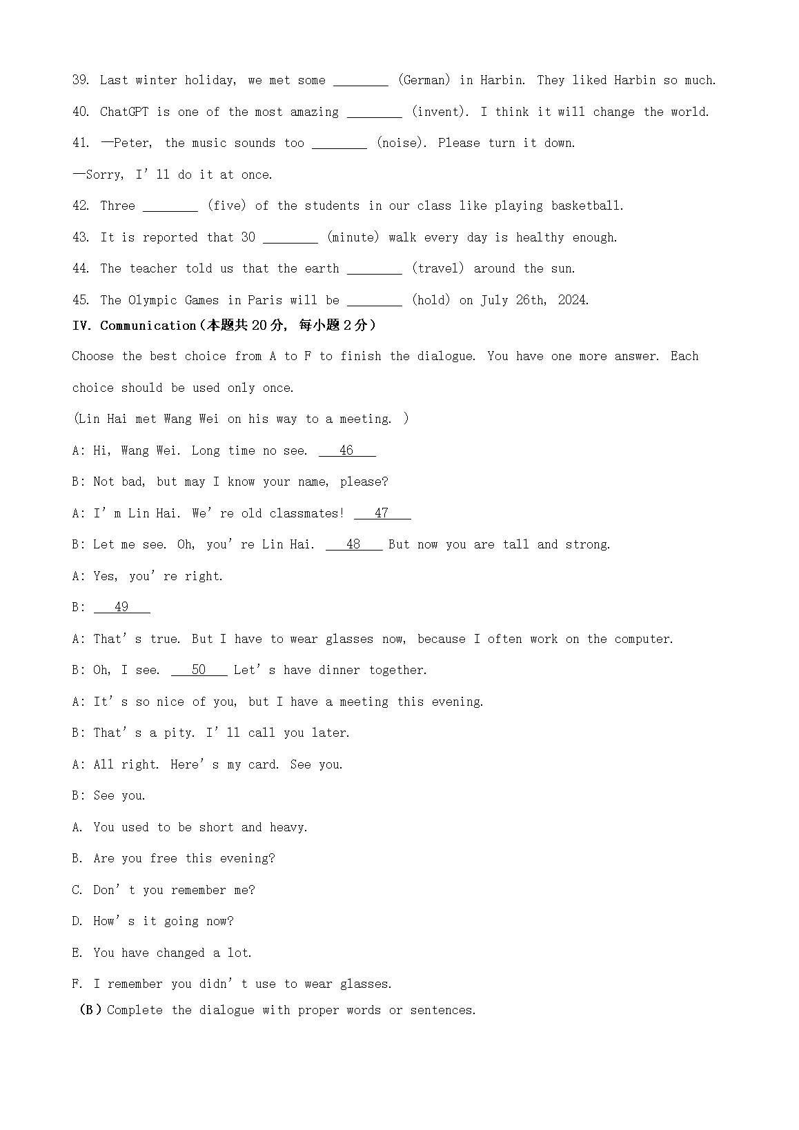 【文档名称】 2024年黑龙江鸡西中考英语试题及答案(Word版).doc