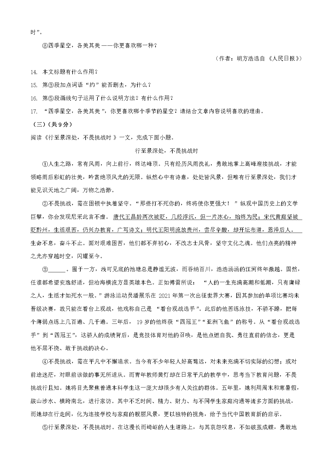 【文档预览】 无忧考网整理发布2024年黑龙江双鸭山中考语文试题及答案(Word版),前五页预览如下: