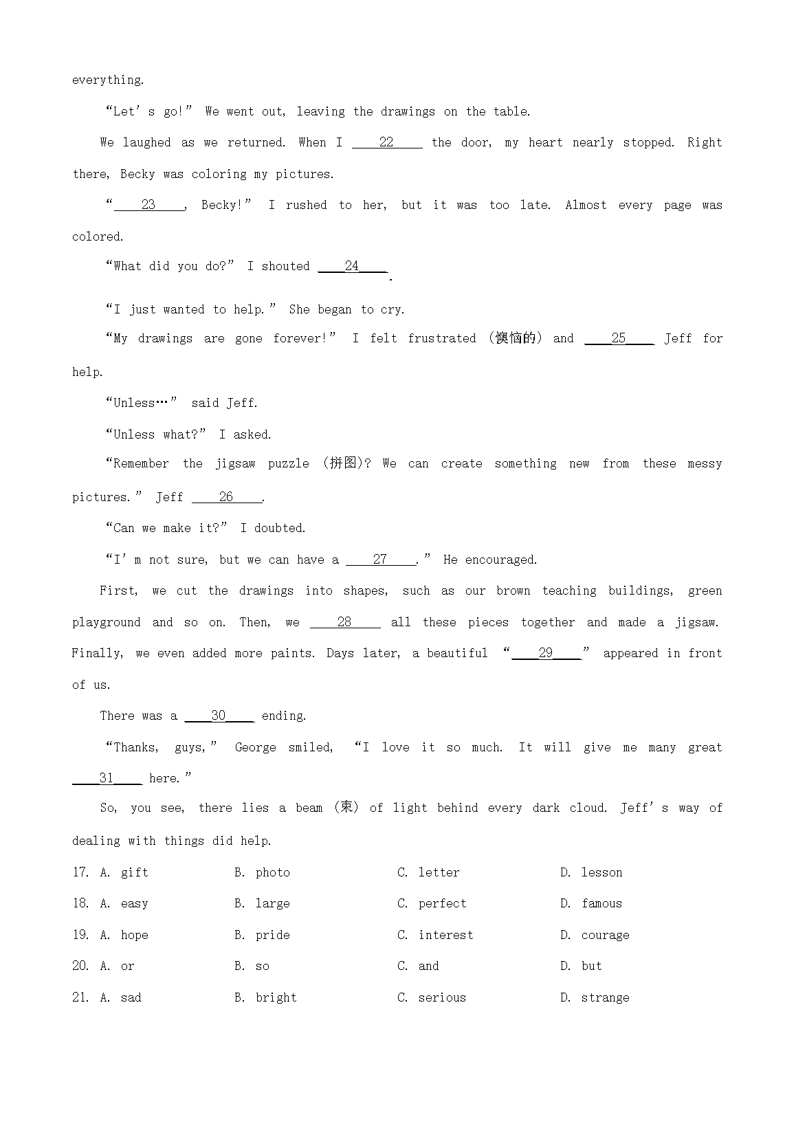 【文档名称】 2024年湖北随州中考英语试题及答案(Word版).doc
