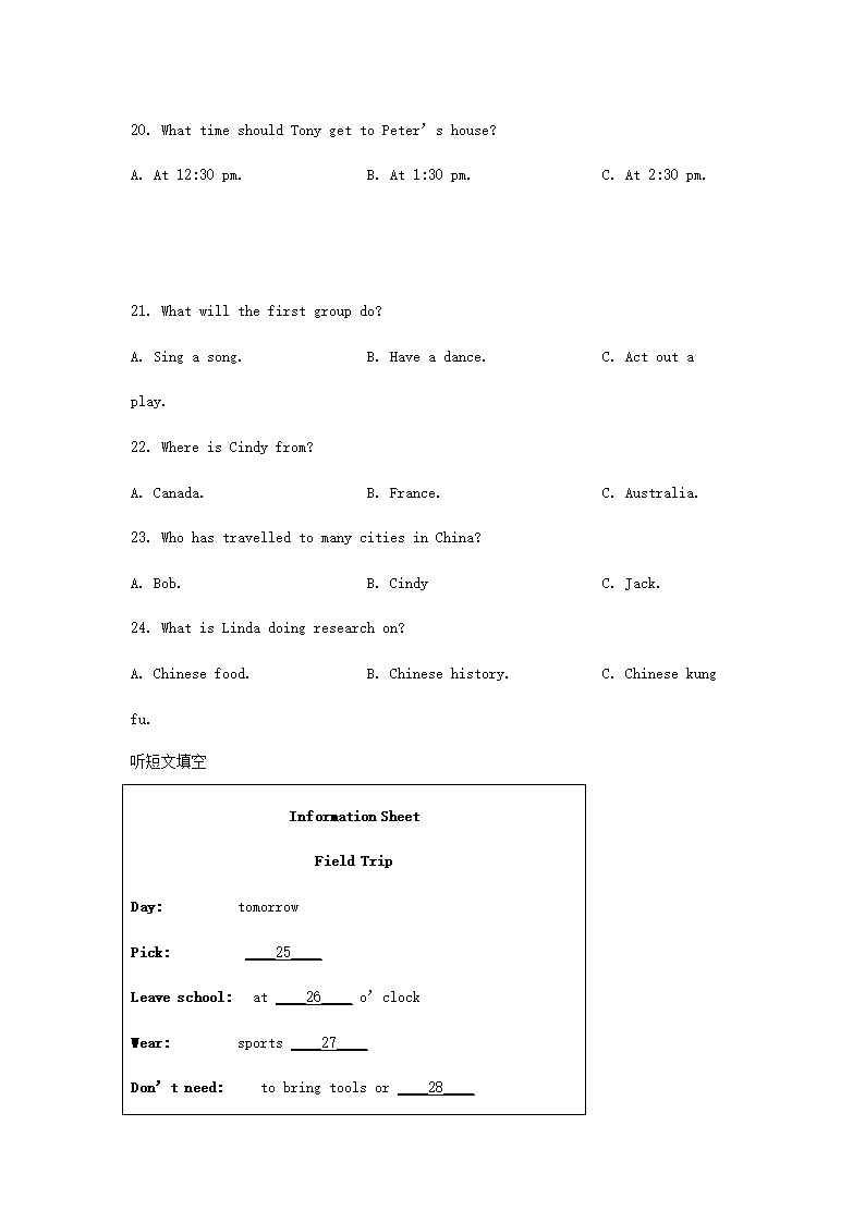 【文档名称】 2024年河北邢台中考英语试题及答案(Word版).doc