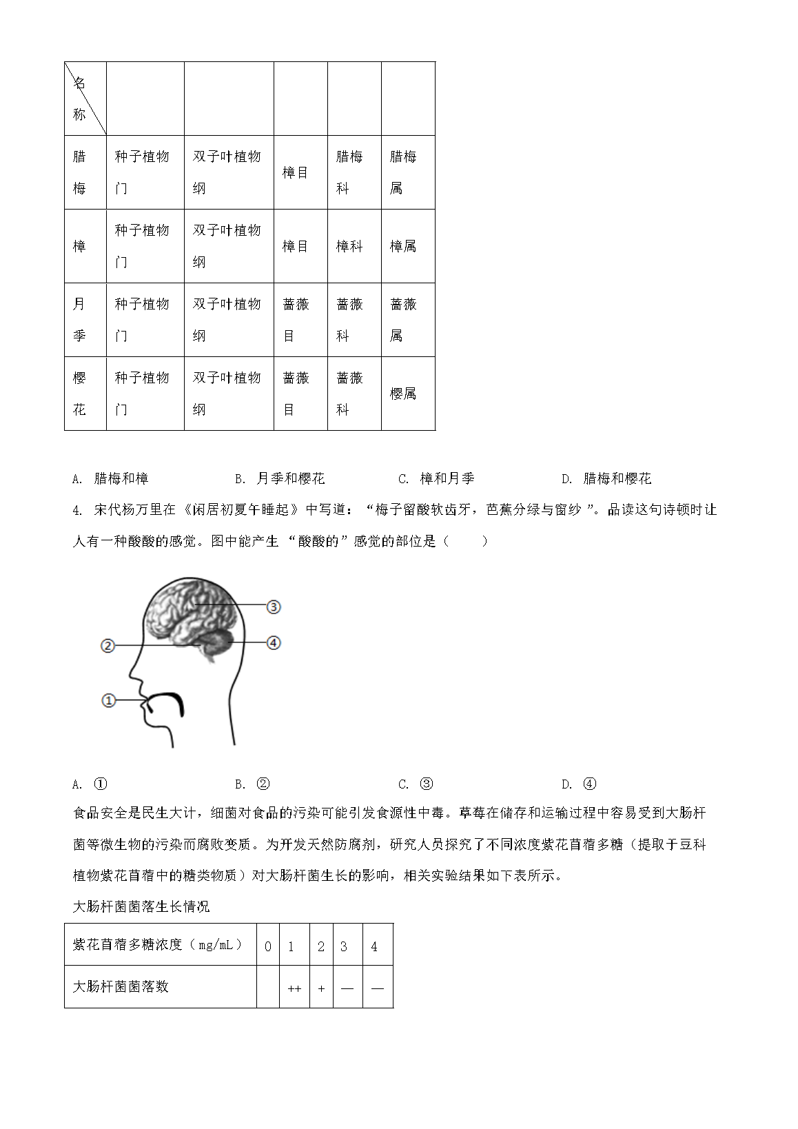 【文档名称】 2024年湖北荆门中考生物试题及答案(Word版).doc