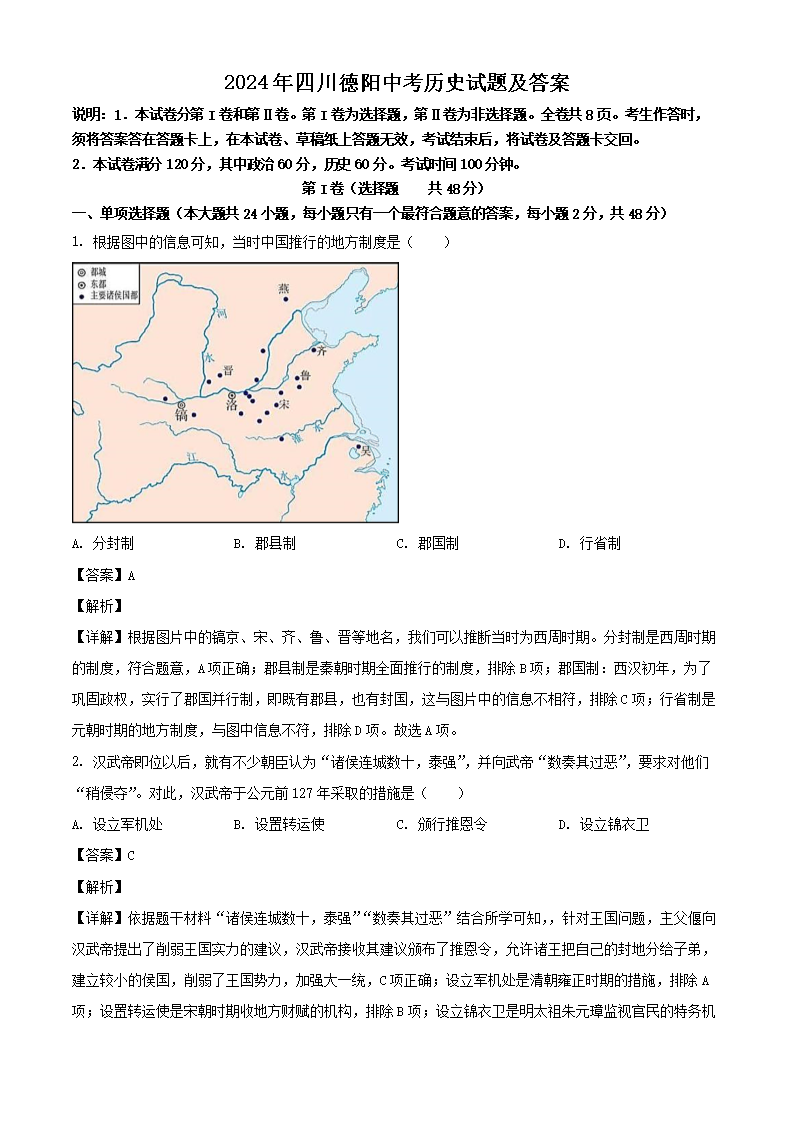 【文档名称】 2024年四川德阳中考历史试题及答案(Word版).doc