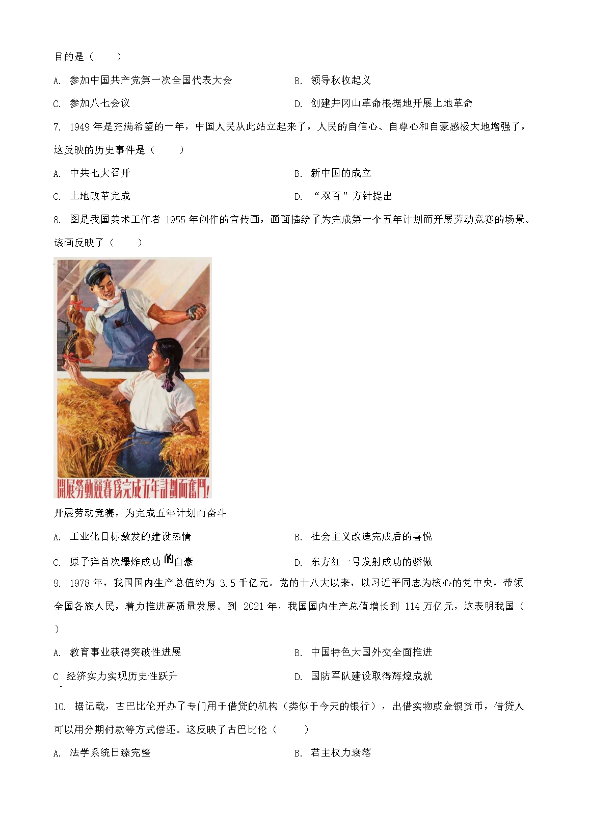 【文档名称】 2024年湖北十堰中考历史试题及答案(Word版).doc