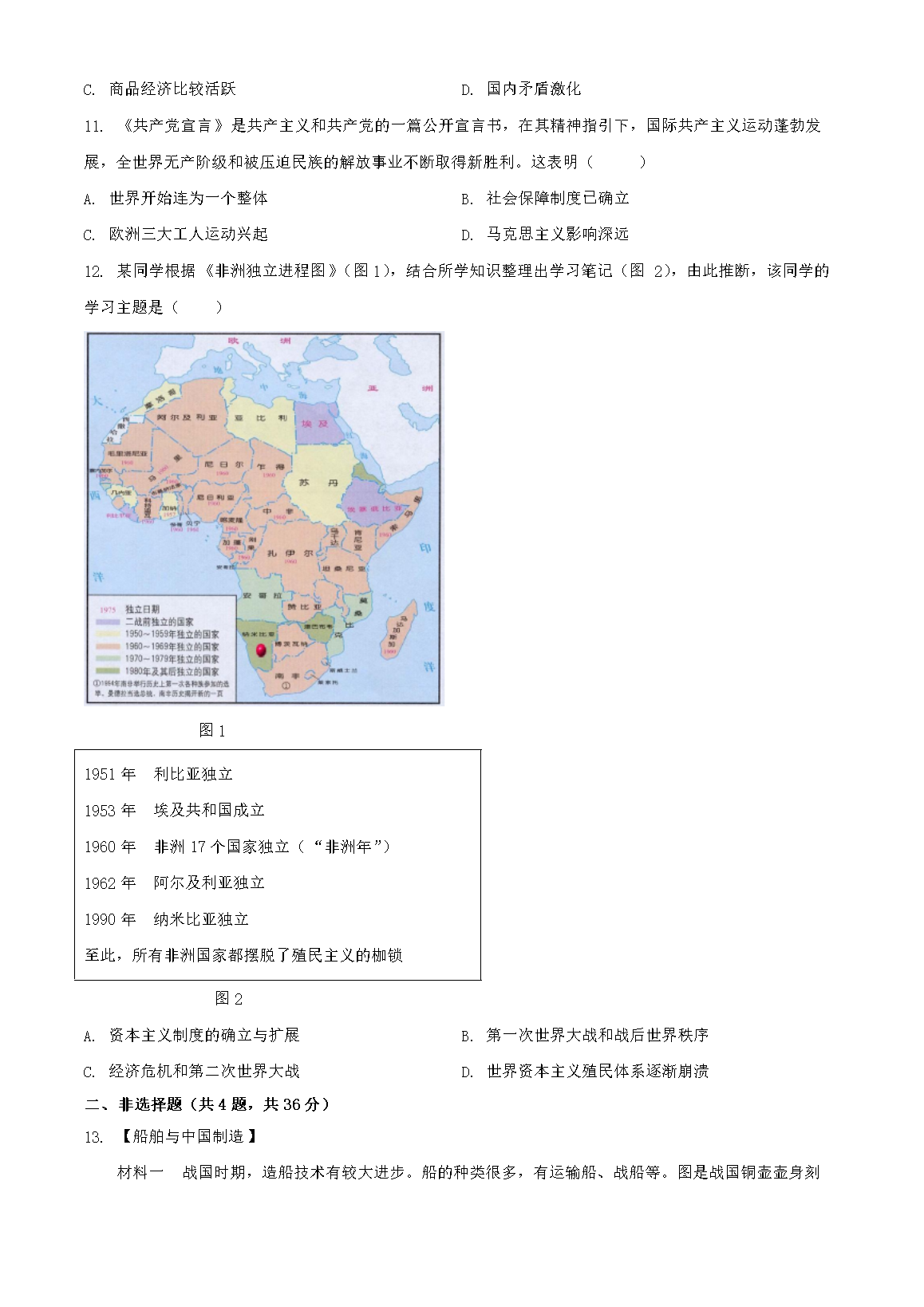 【文档名称】 2024年湖北襄阳中考历史试题及答案(Word版).doc