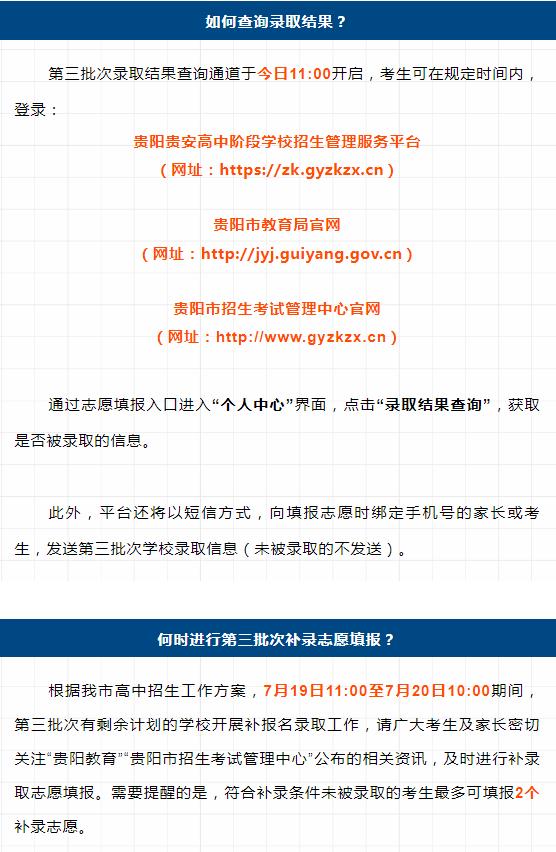 7月19日,2024年贵阳贵安高中阶段学校网上招生第二批次补报录取工作、第三批次录取工作完成,录取情况如下——