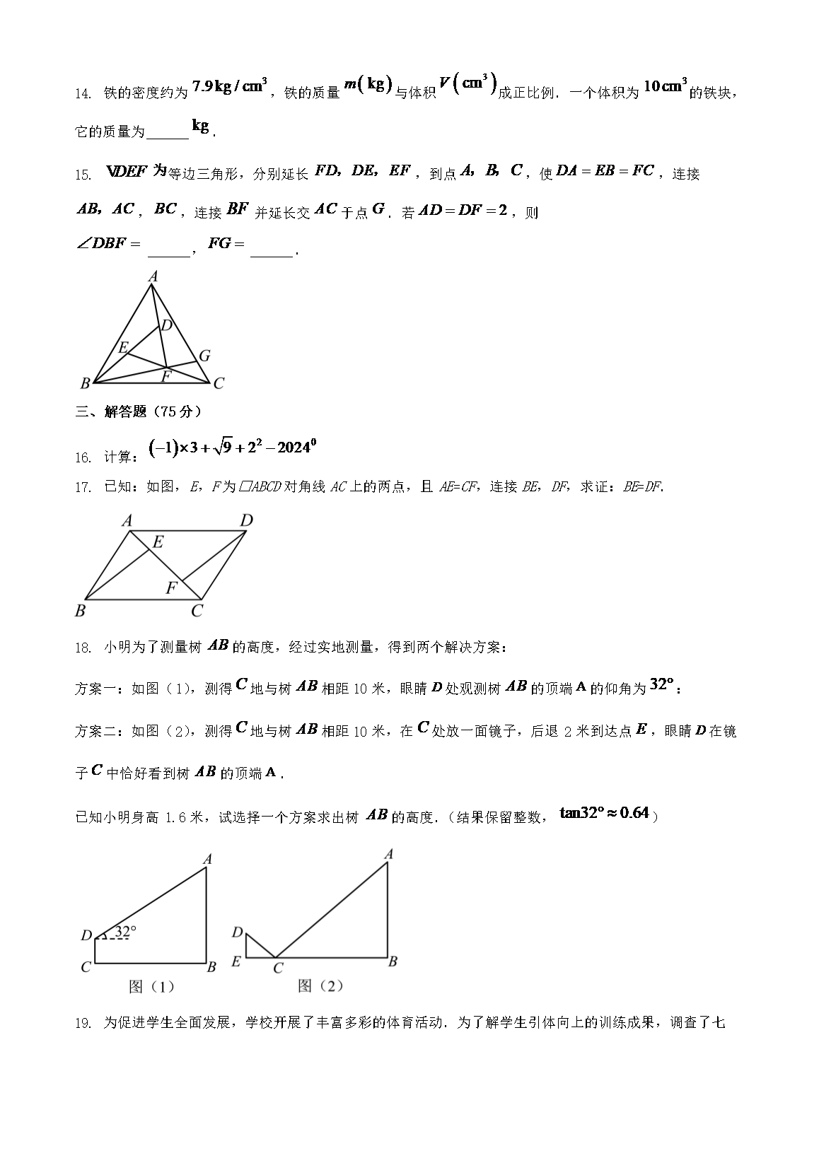 【文档名称】 2024年湖北中考数学试题及答案(Word版).doc