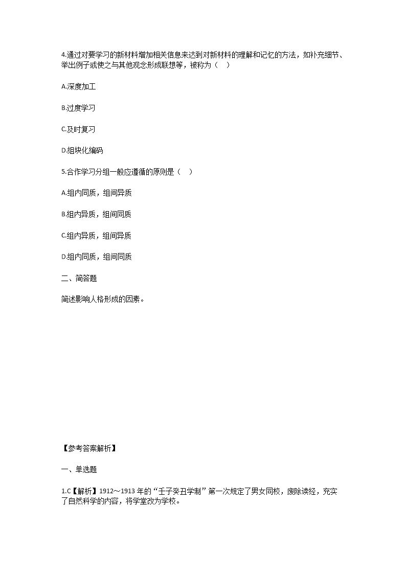 【文档名称】 2024年河南许昌教师招聘考试模拟题及答案(Word版).doc