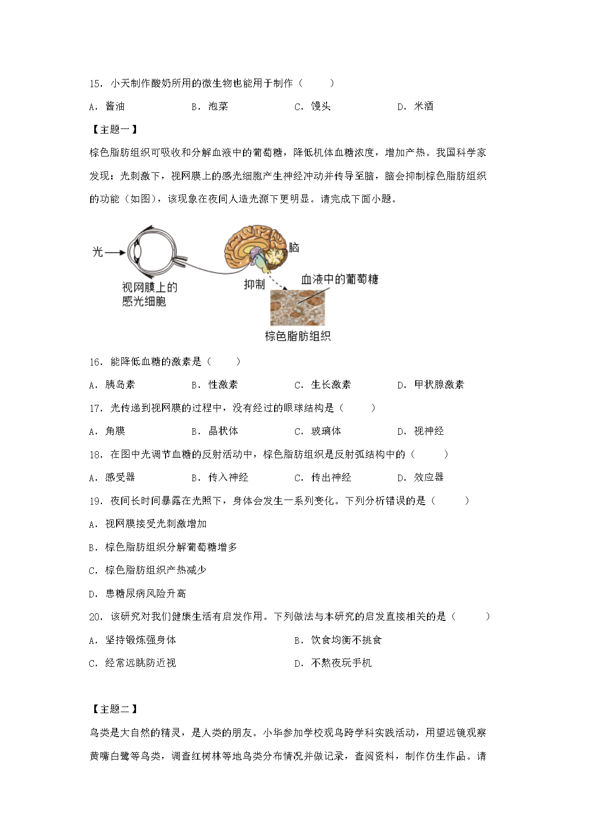 【文档名称】 2024年广东湛江中考生物试题及答案(Word版).doc