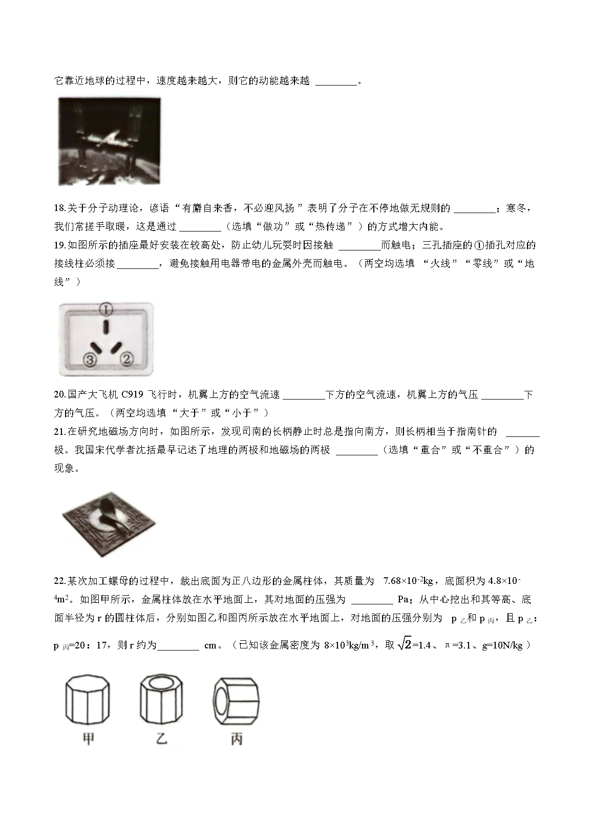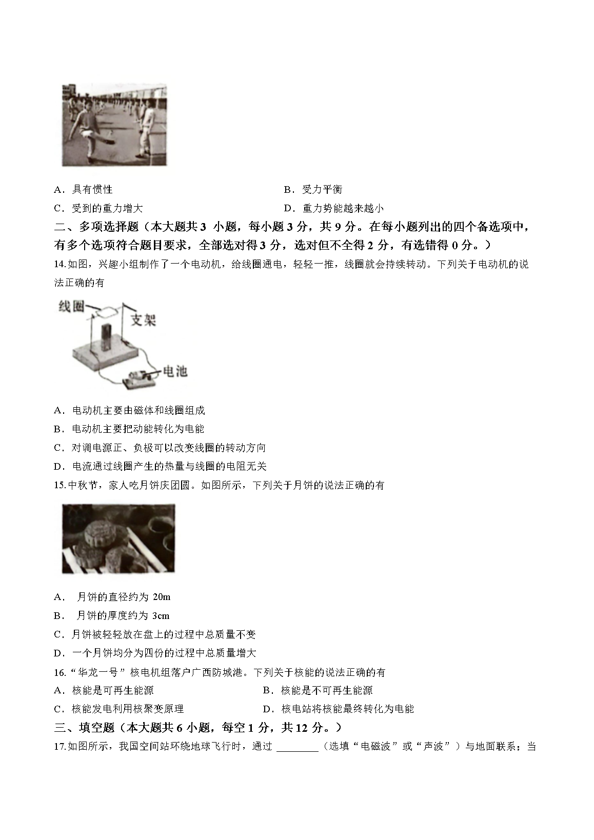 【文档名称】 2024年广西贵港中考物理试题及答案(Word版).doc