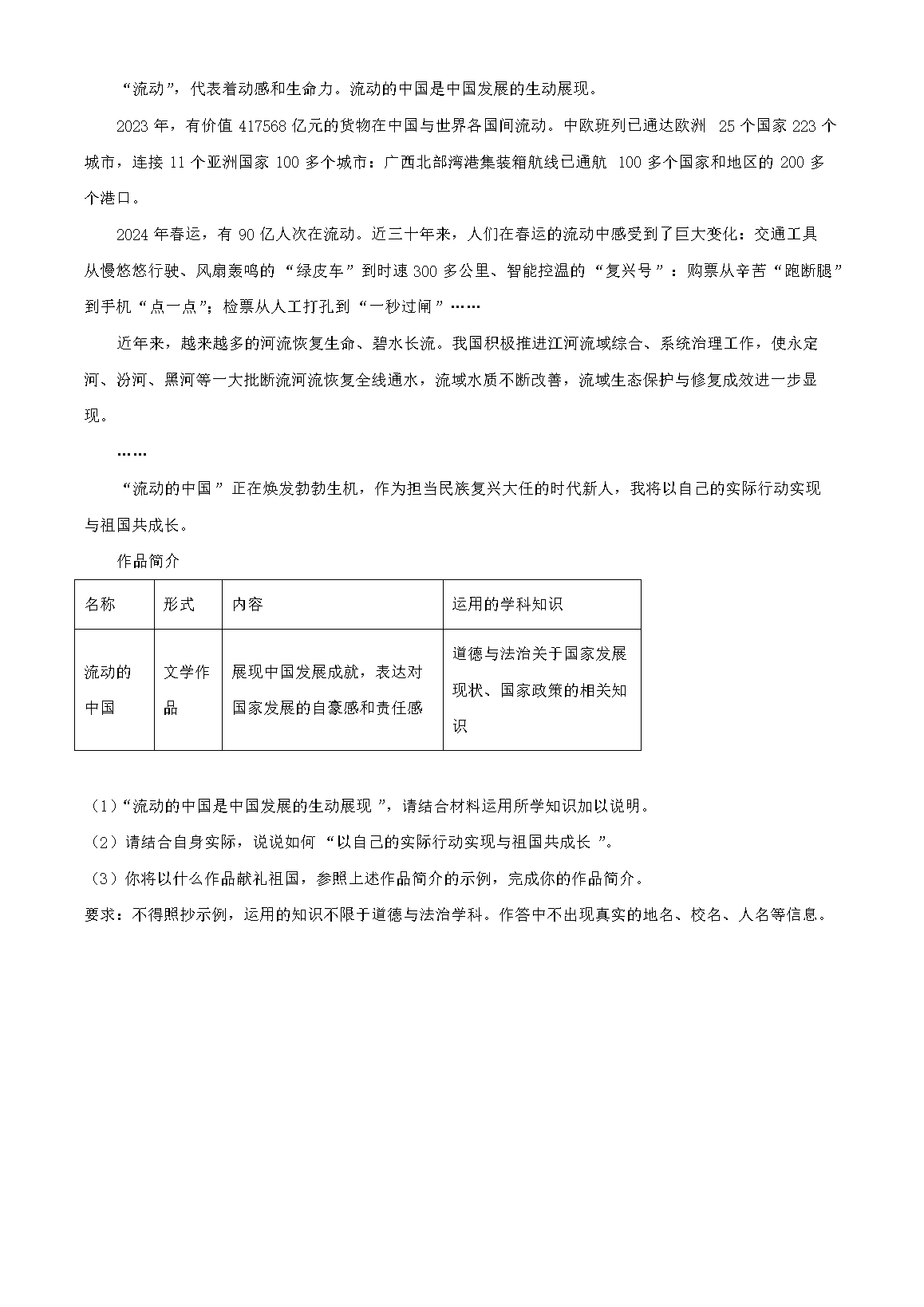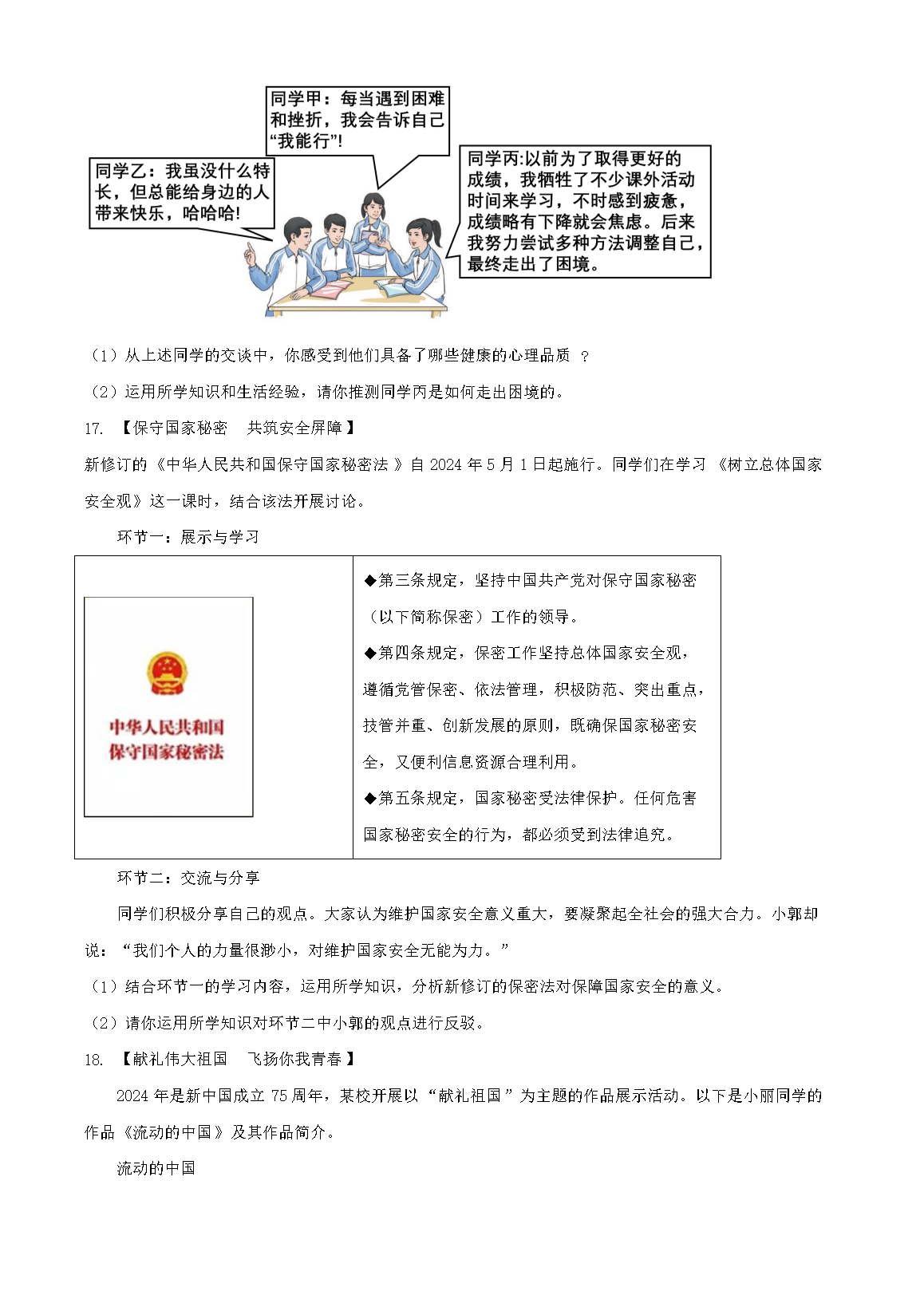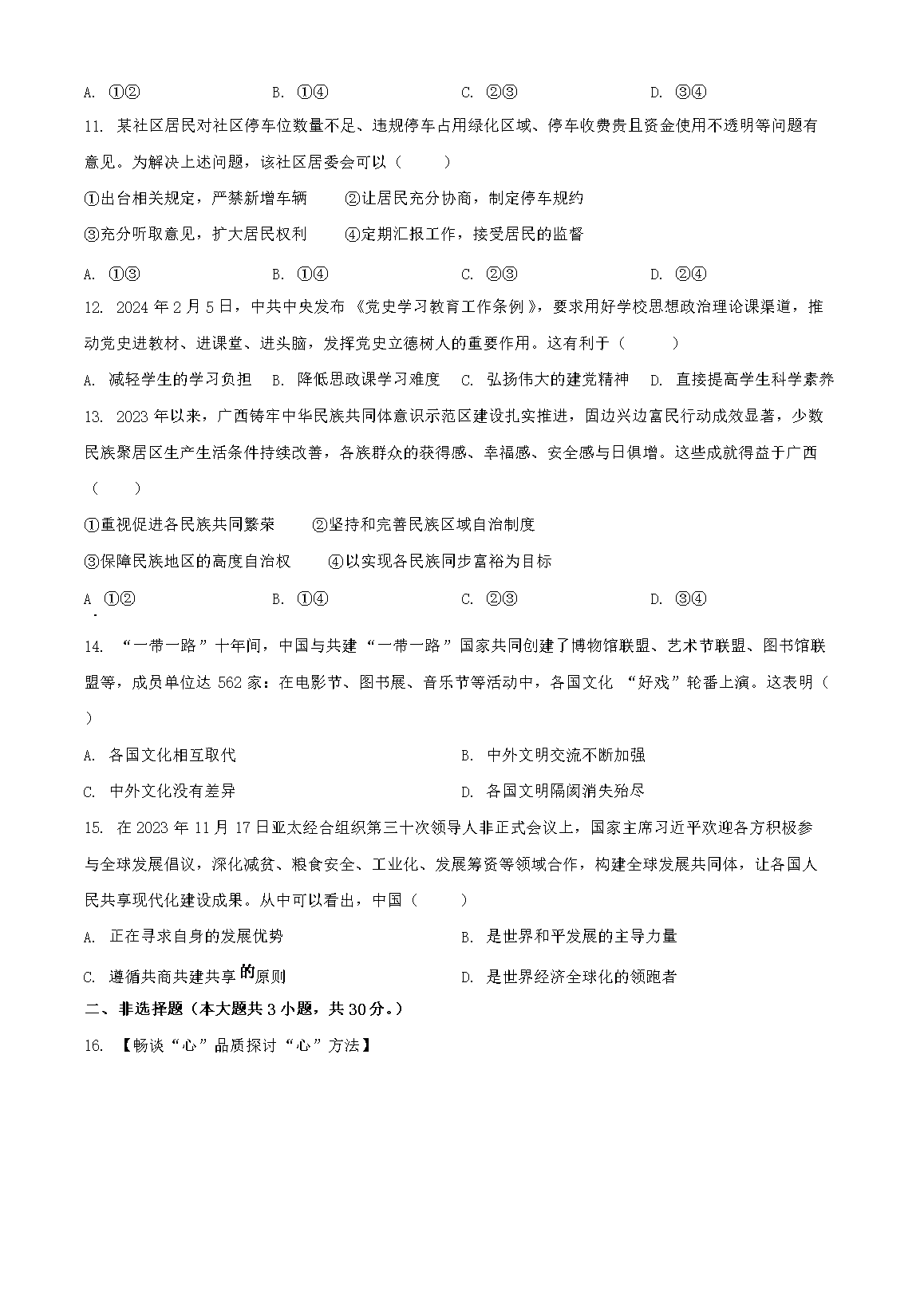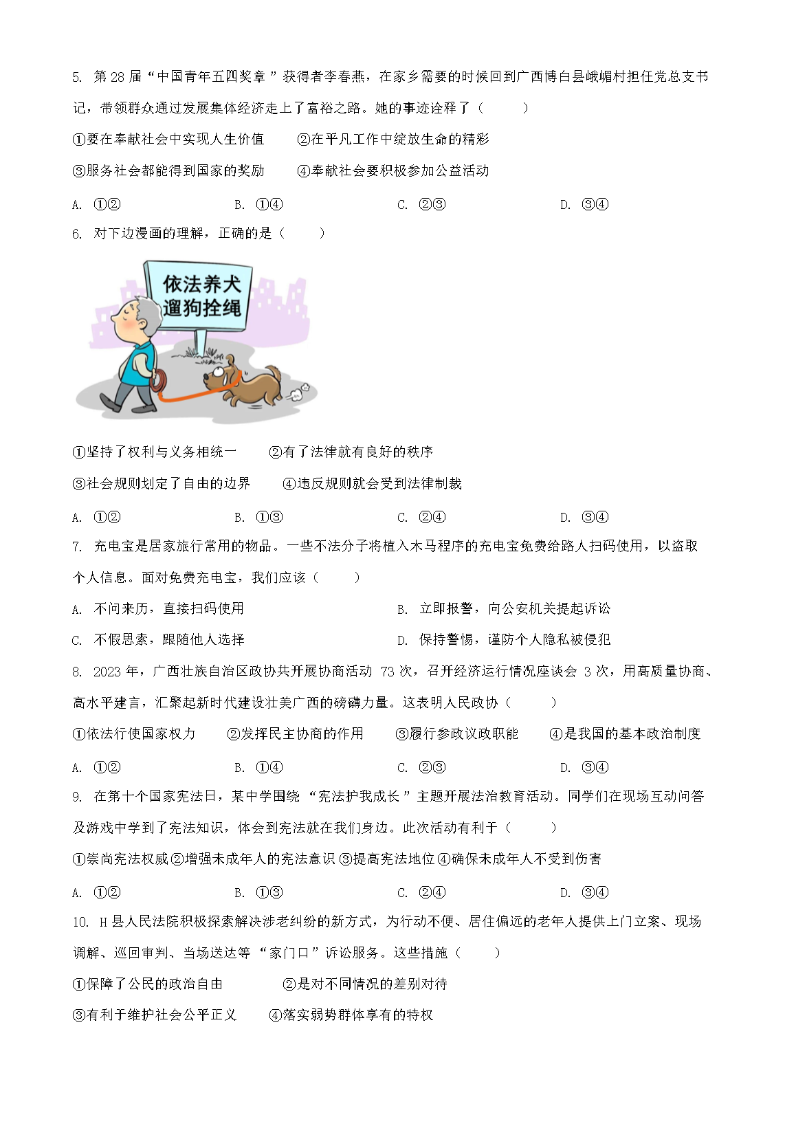 【文档名称】 2024年广西桂林中考道德与法治试题及答案(Word版).doc