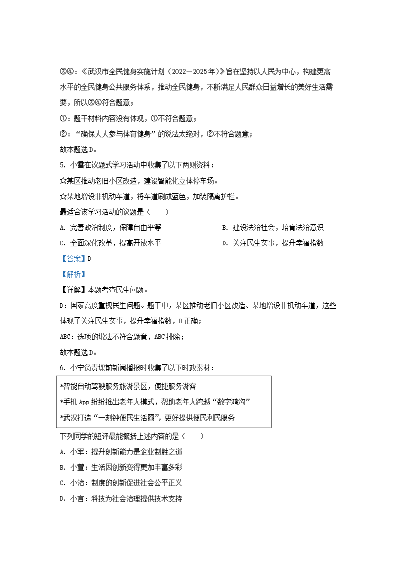 【文档名称】 2023-2024学年湖北省武汉市东西湖区学九年级上学期道德与法治第一次月考试题及答案(Word版).doc
