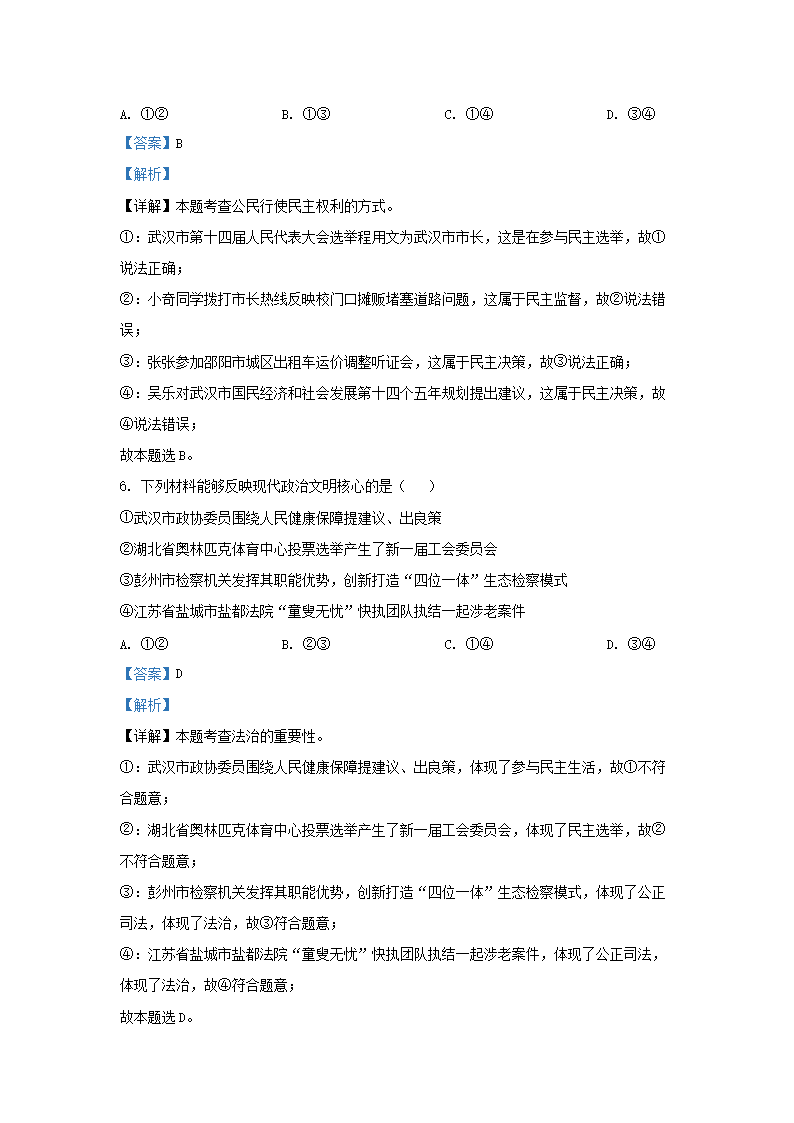 【文档预览】 无忧考网整理发布2023-2024学年湖北省武汉市武昌区九年级上学期道德与法治12月月考试题及答案(Word版),前五页预览如下: