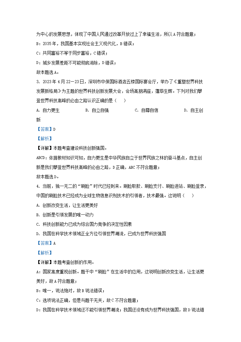 【文档名称】 2023-2024学年湖北省武汉市武昌区九年级上学期道德与法治期中试题及答案(Word版).doc