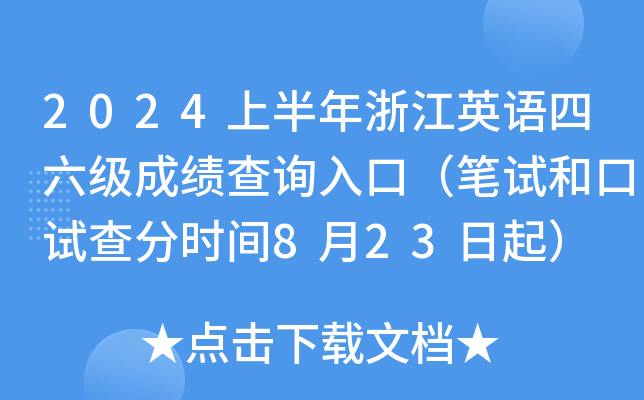 【#大学英语四六级考试# #2024上半年浙江英语四六级成绩查询入口(笔试和口试查分时间8月23日起)#】©无忧考网从中国教育考试网发布的《2024年上半年全国大学英语四、六级考试(CET)成绩查询有关安排》得知,2024上半年浙江英语四六级成绩查询入口已公布,笔试和口试查分时间为8月23日起,具体详情如下: