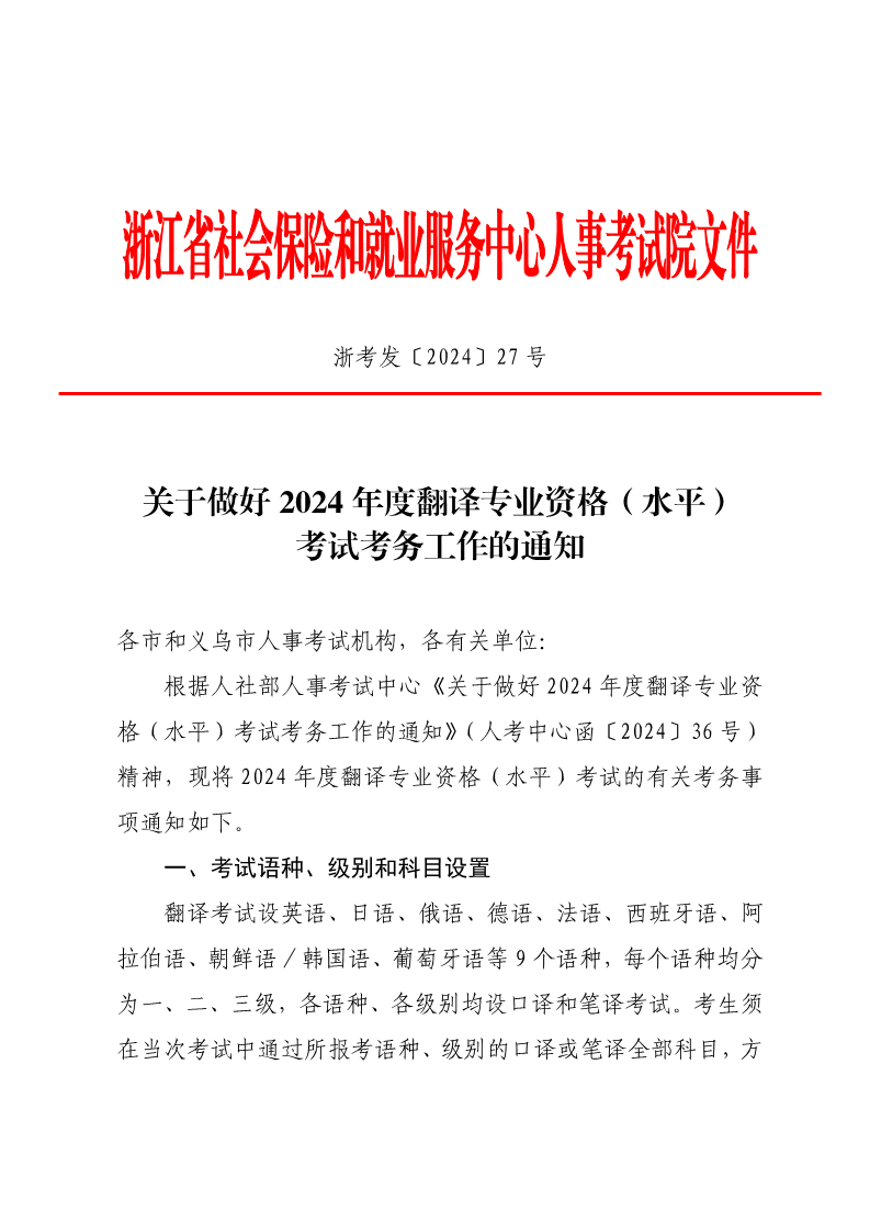 2024年浙江翻译专业资格水平考试考务工作的通知(8月23日起报考)